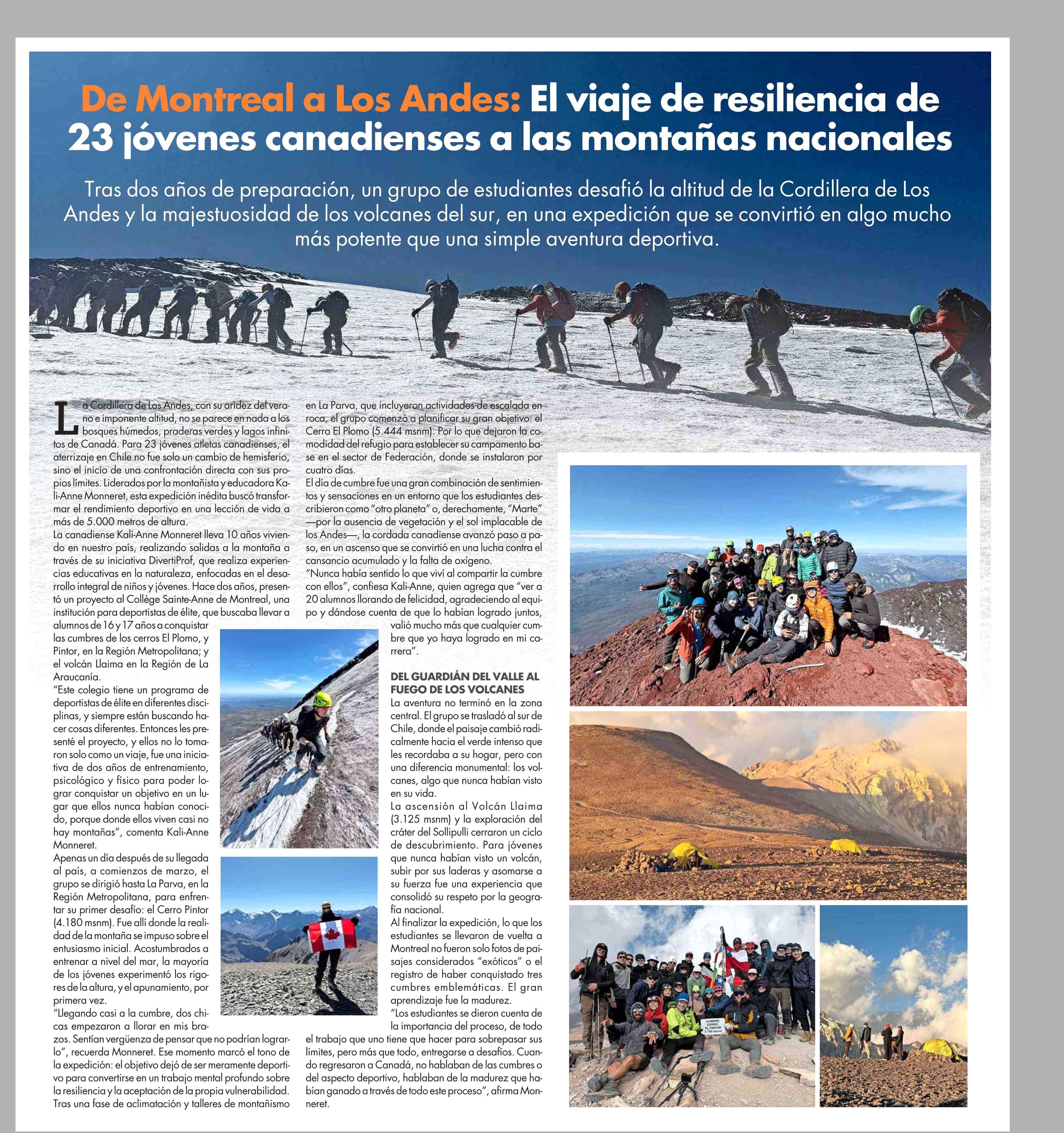Título: De Montreal a Los Andes: El viaje de resiliencia de 23 jóvenes canadienses a las montañas nacionales