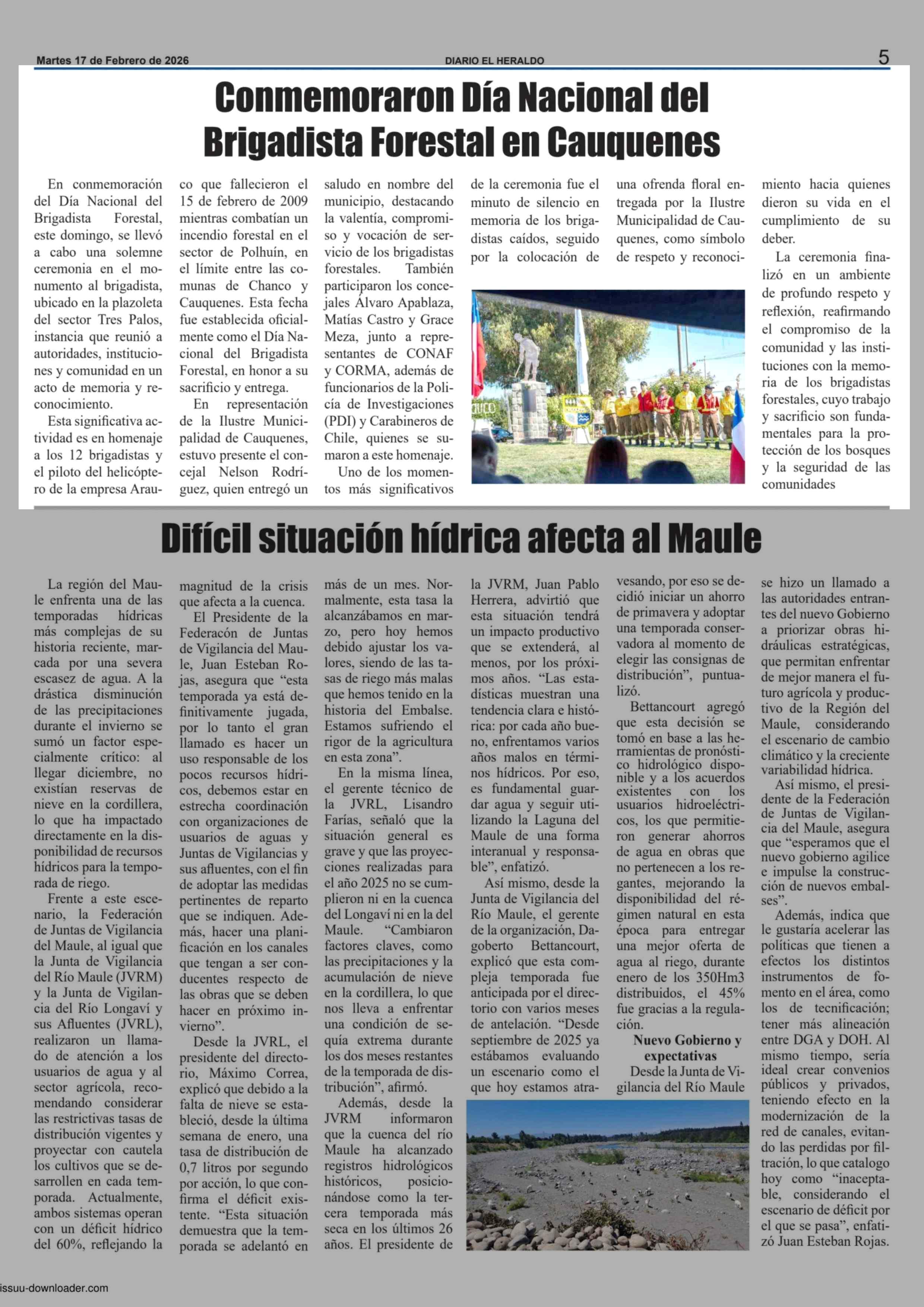 Conmemoraron Día Nacional del Brigadista Forestal en Cauquenes 17-02-2026 El Heraldo |