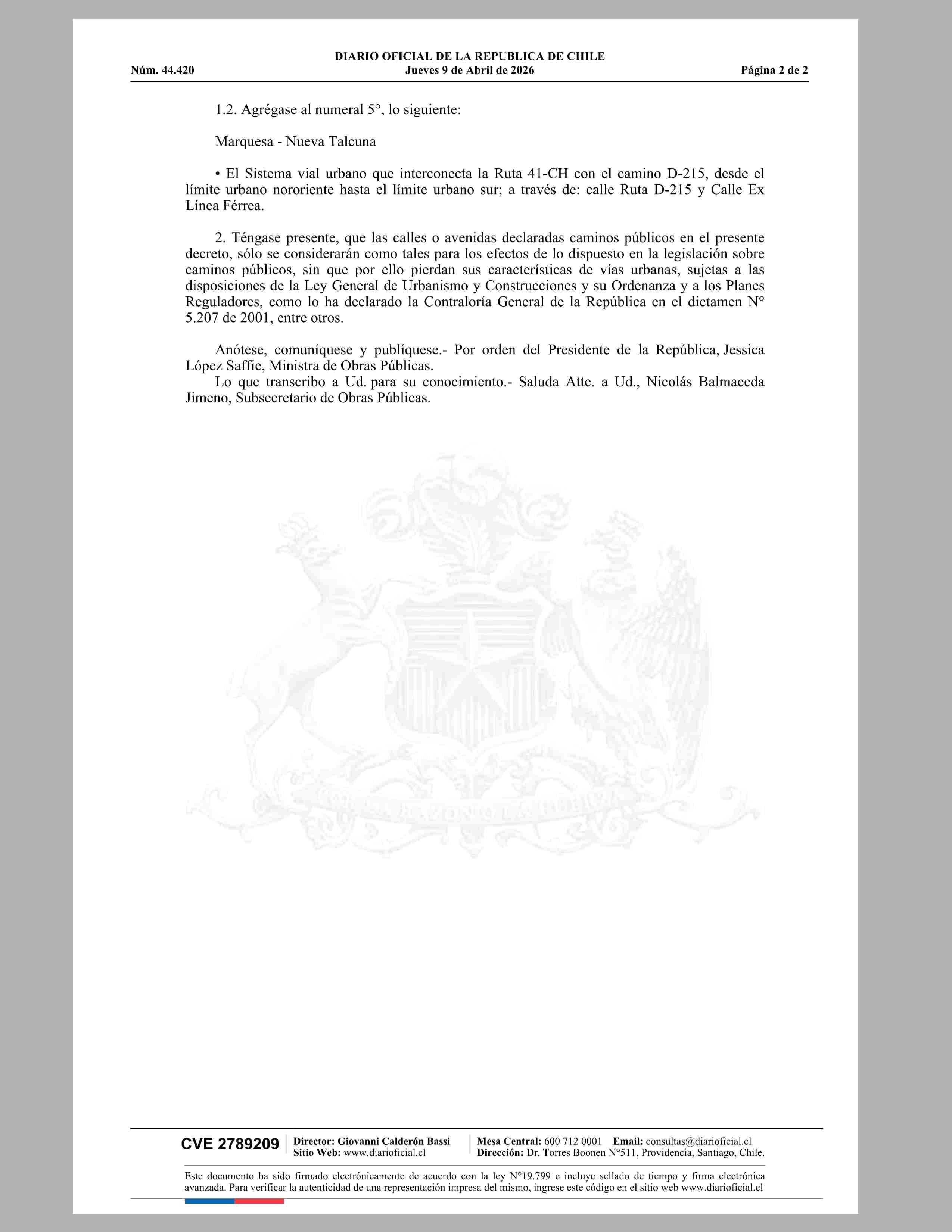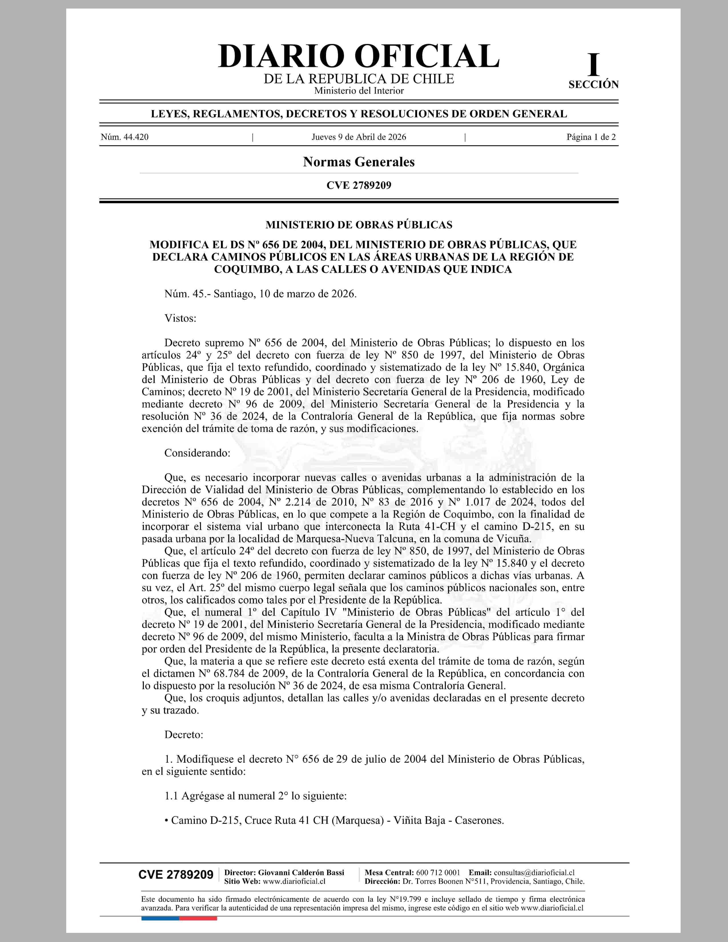 MINISTERIO DE OBRAS PÚBLICAS 09-04-2026 Diario Oficial Edición Electrónica |