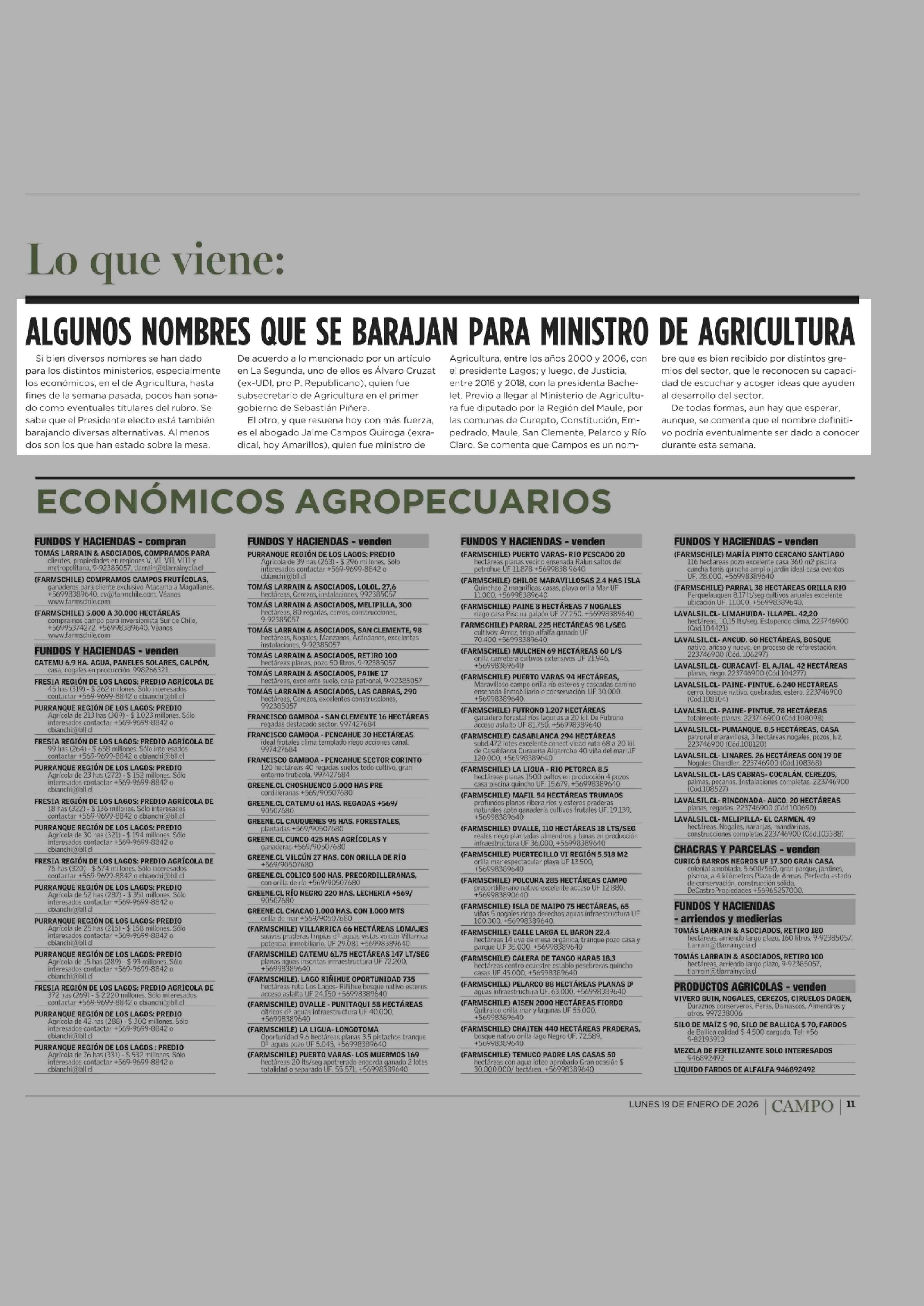 Título: ALGUNOS NOMBRES QUE SE BARAJAN PARA MINISTRO DE AGRICULTURA Si bien diversos nombres se han dado De acuerdo a lo mencionado por un artículo Agricultura, entre los años 2000 y 2006, con bre que es bien recibido por distintos gre-