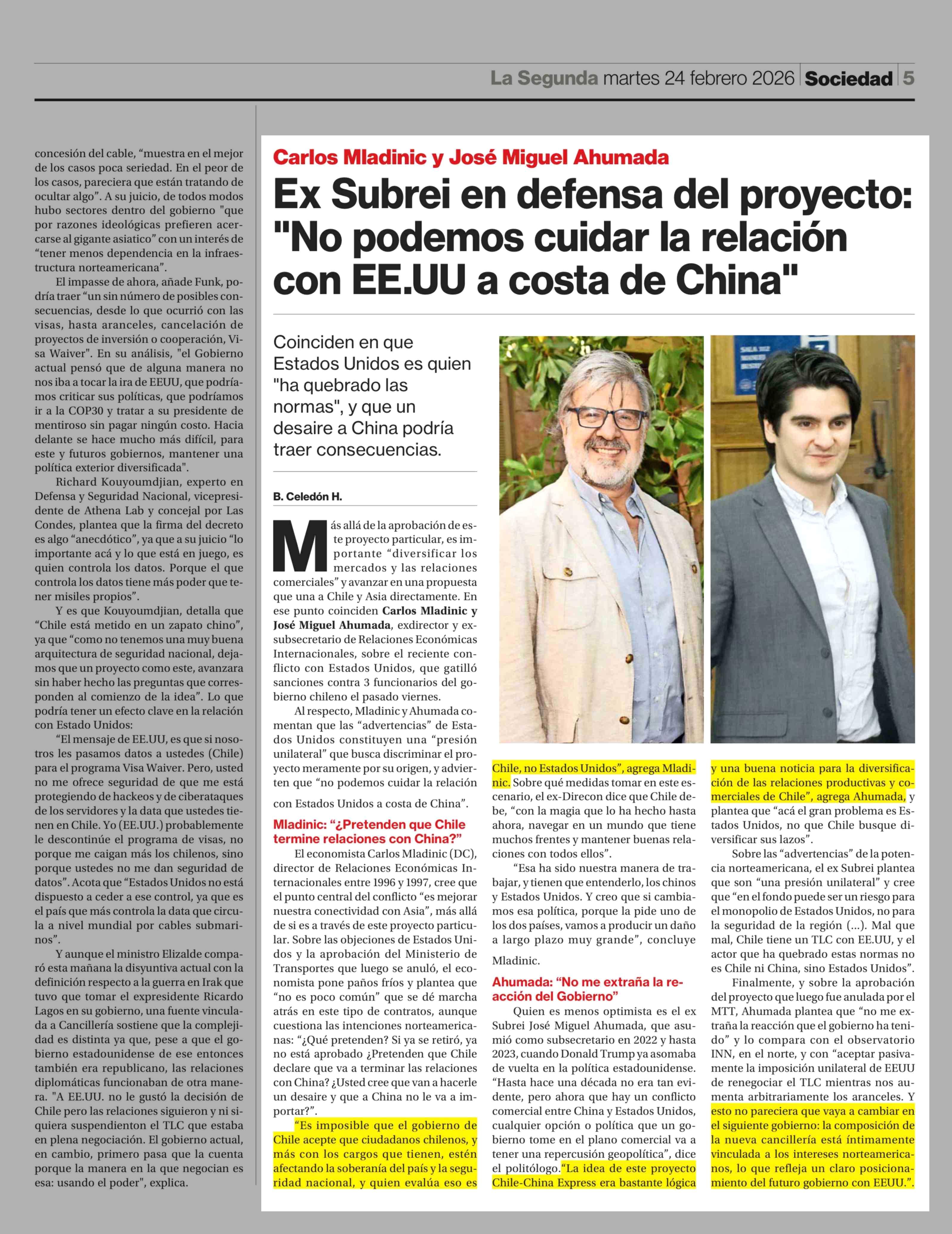 Título: Ex Subrei en defensa del proyecto: "No podemos cuidar la relación con EE.UU a costa de China"