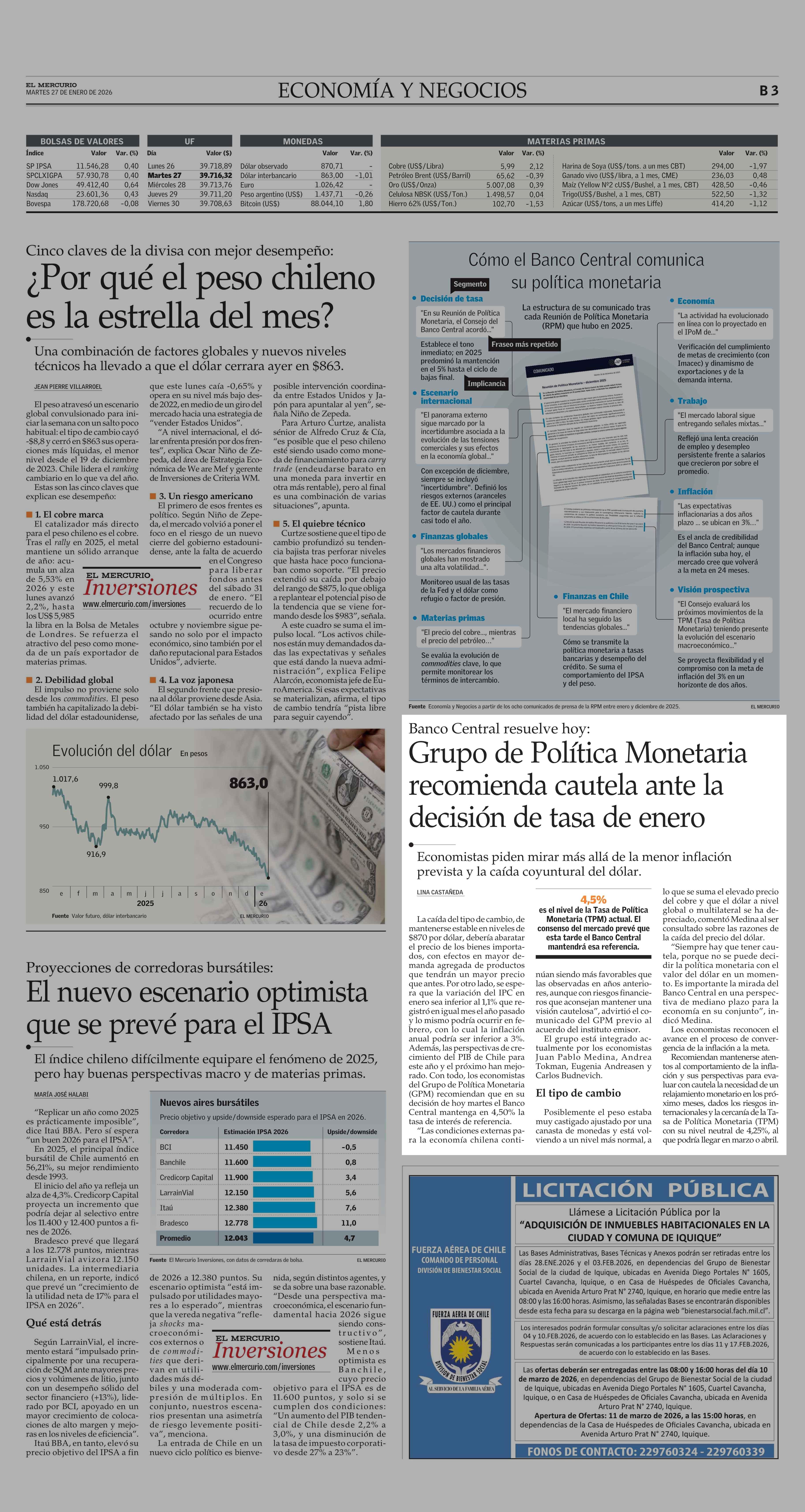 Grupo de Política Monetaria recomienda cautela ante la decisión de tasa de enero 27-01-2026 El Mercurio |