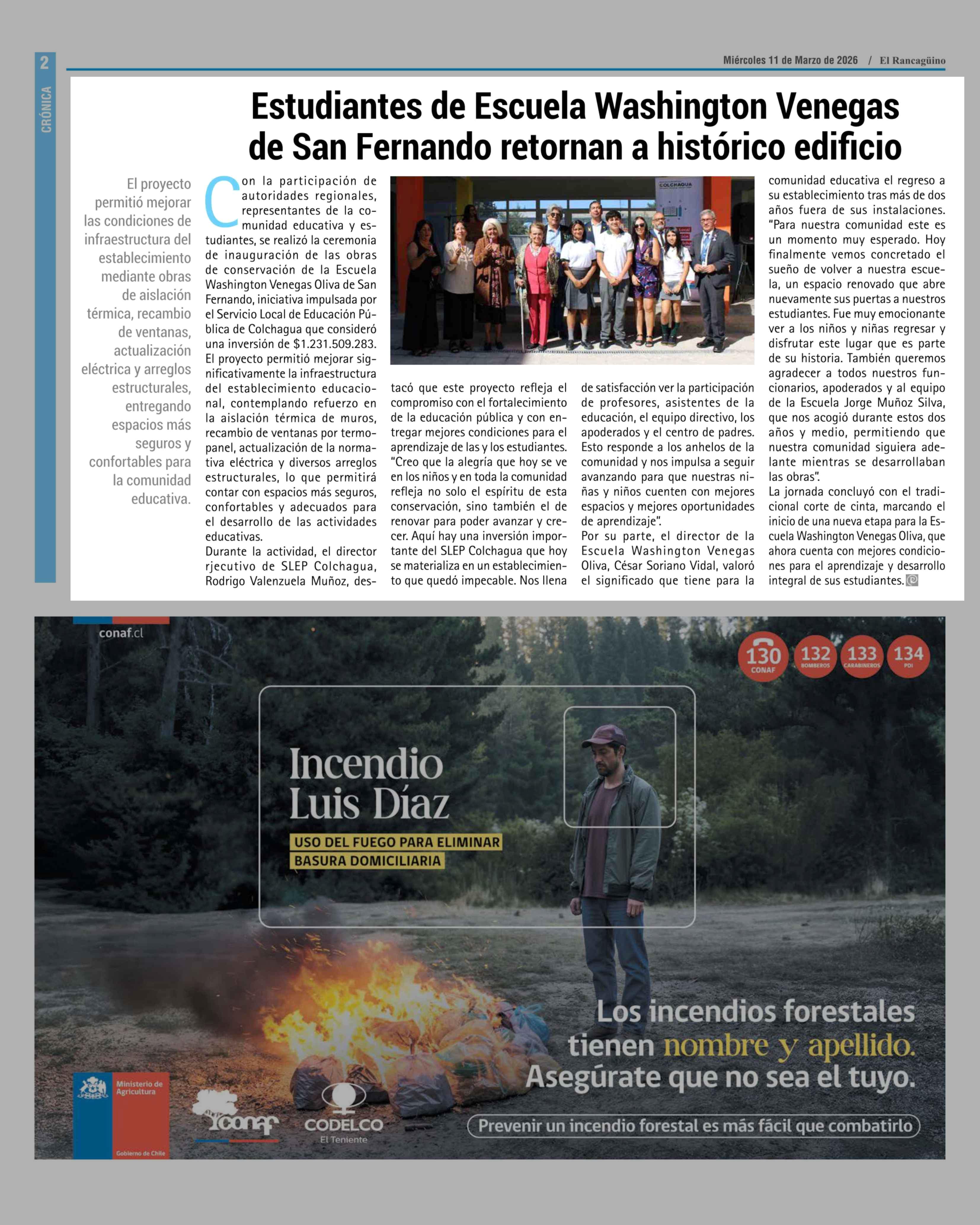 Estudiantes de Escuela Washington Venegas de San Fernando retornan a histórico edificio 11-03-2026 El Rancagüino |