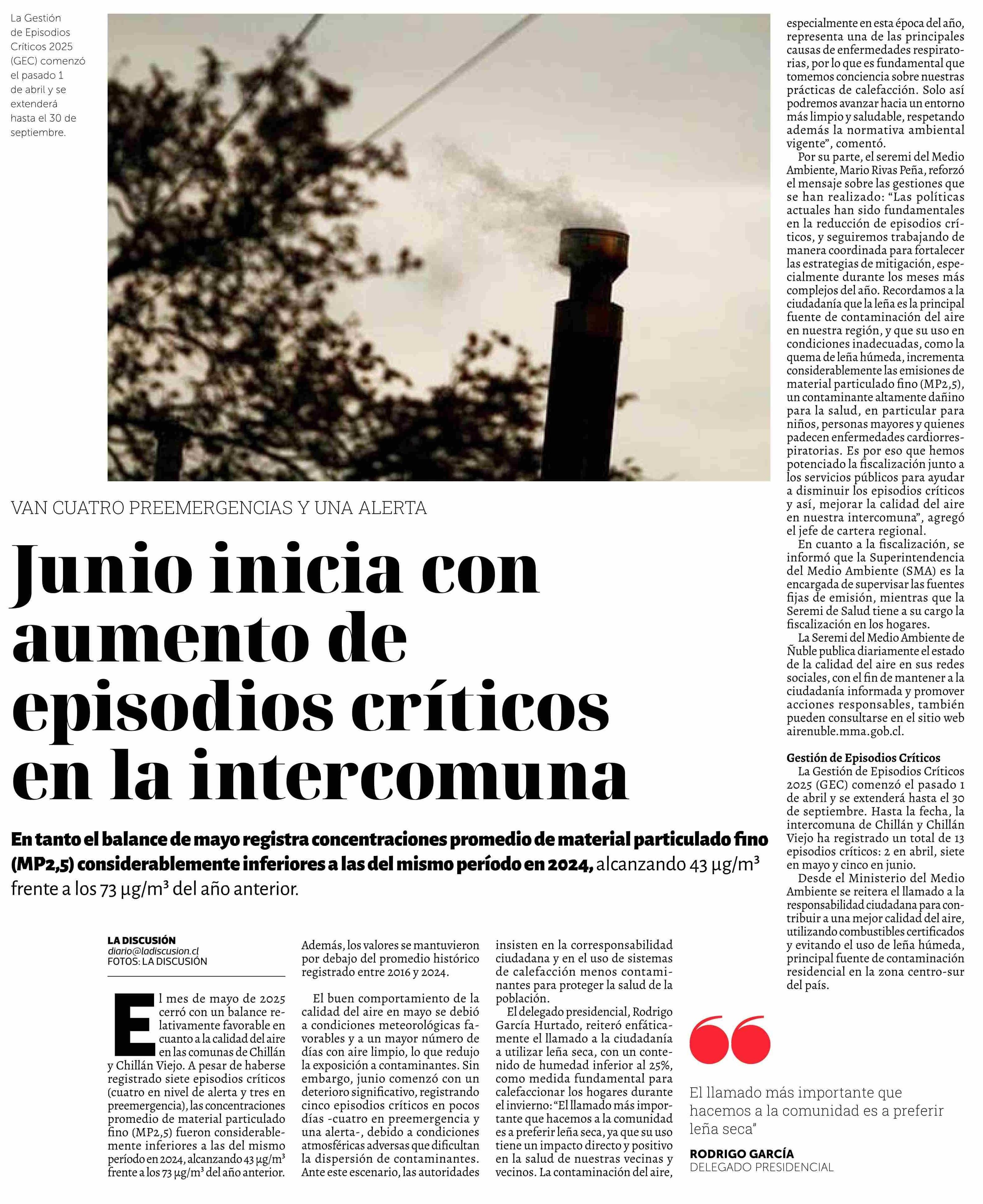 | Título: | Junio inicia con aumento de episodios críticos en la intercomuna |