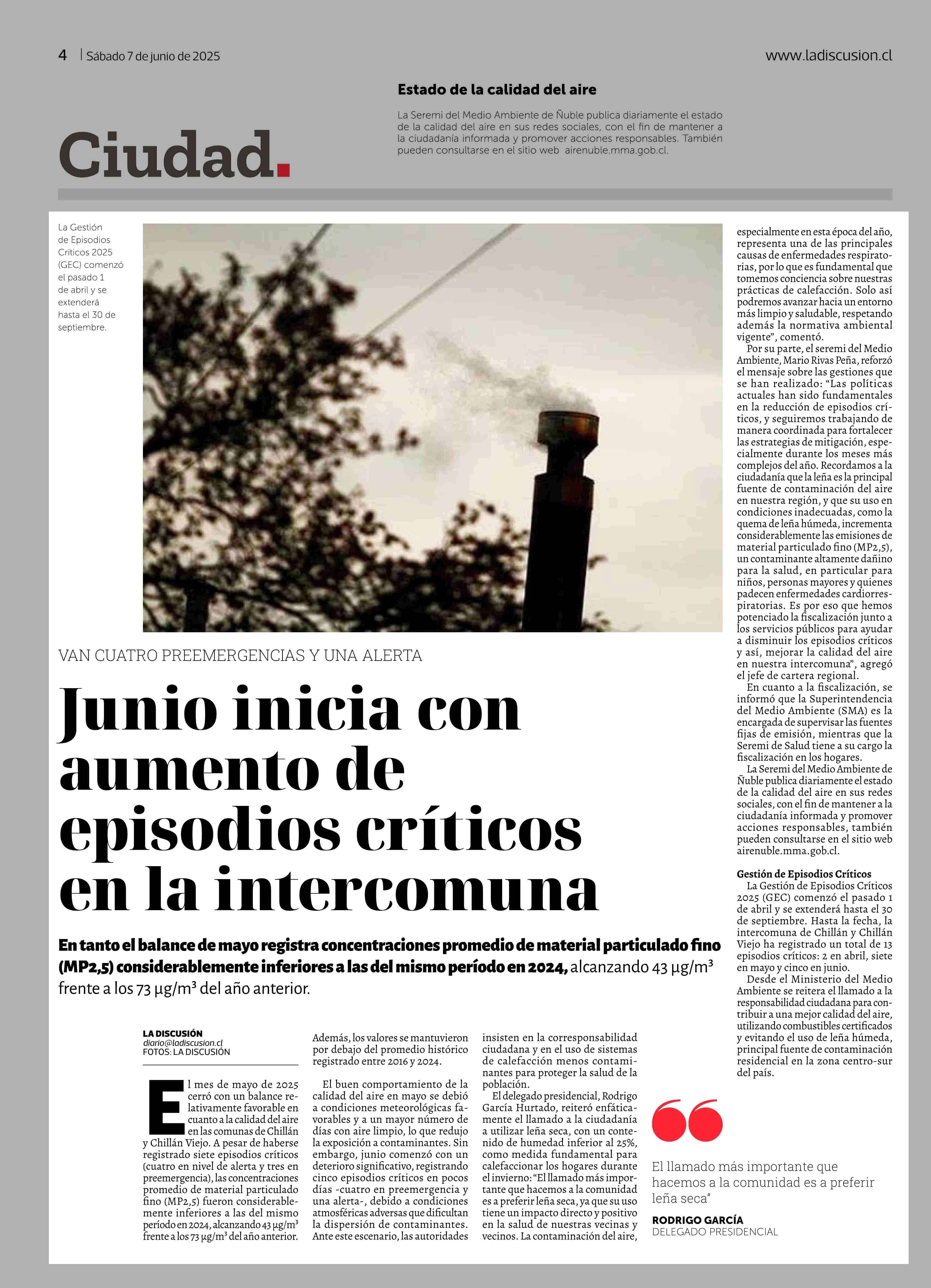 Junio inicia con aumento de episodios críticos en la intercomuna 07-06-2025 La Discusión |