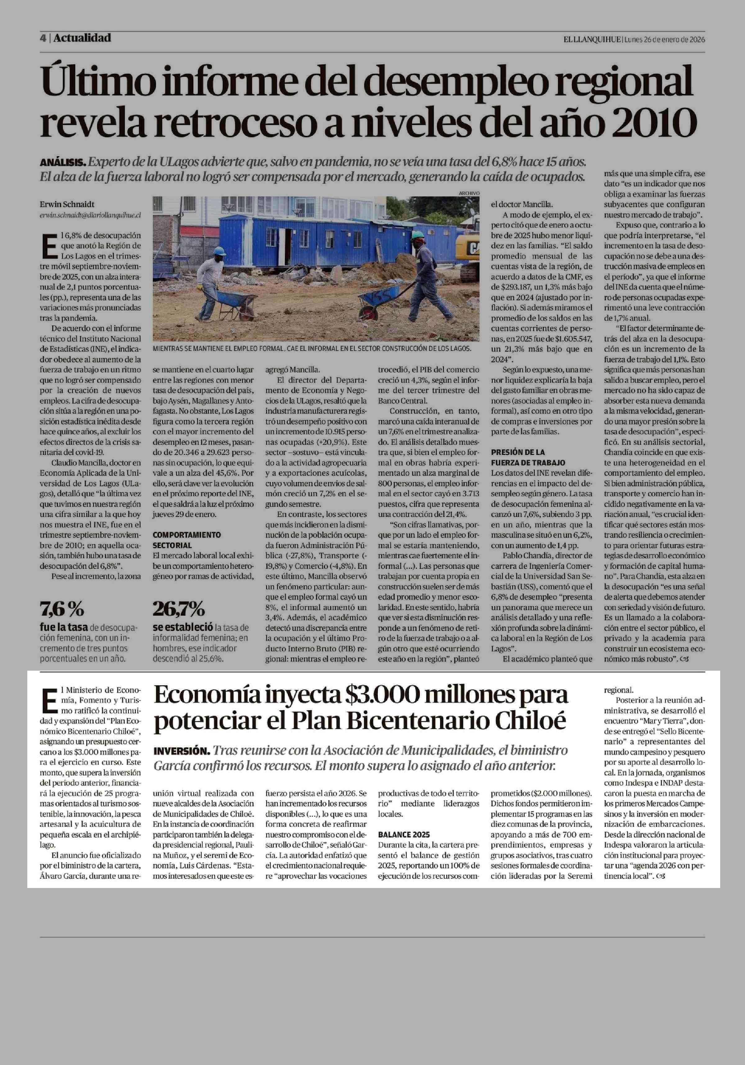 Economía inyecta $3.000 millones para potenciar el Plan Bicentenario Chiloé 26-01-2026 El Llanquihue |