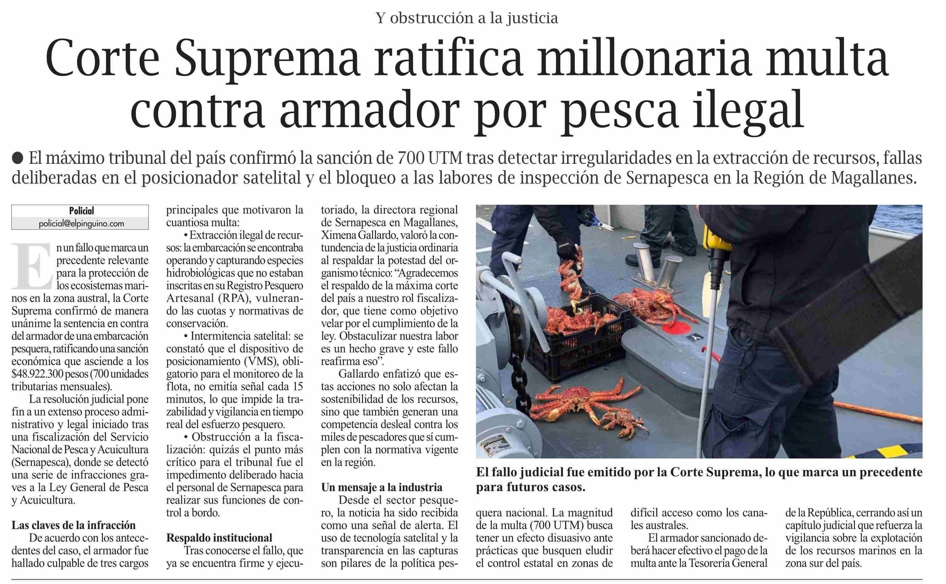 Corte Suprema ratifica millonaria multa contra armador por pesca ilegal 20-03-2026 El Pingüino |
