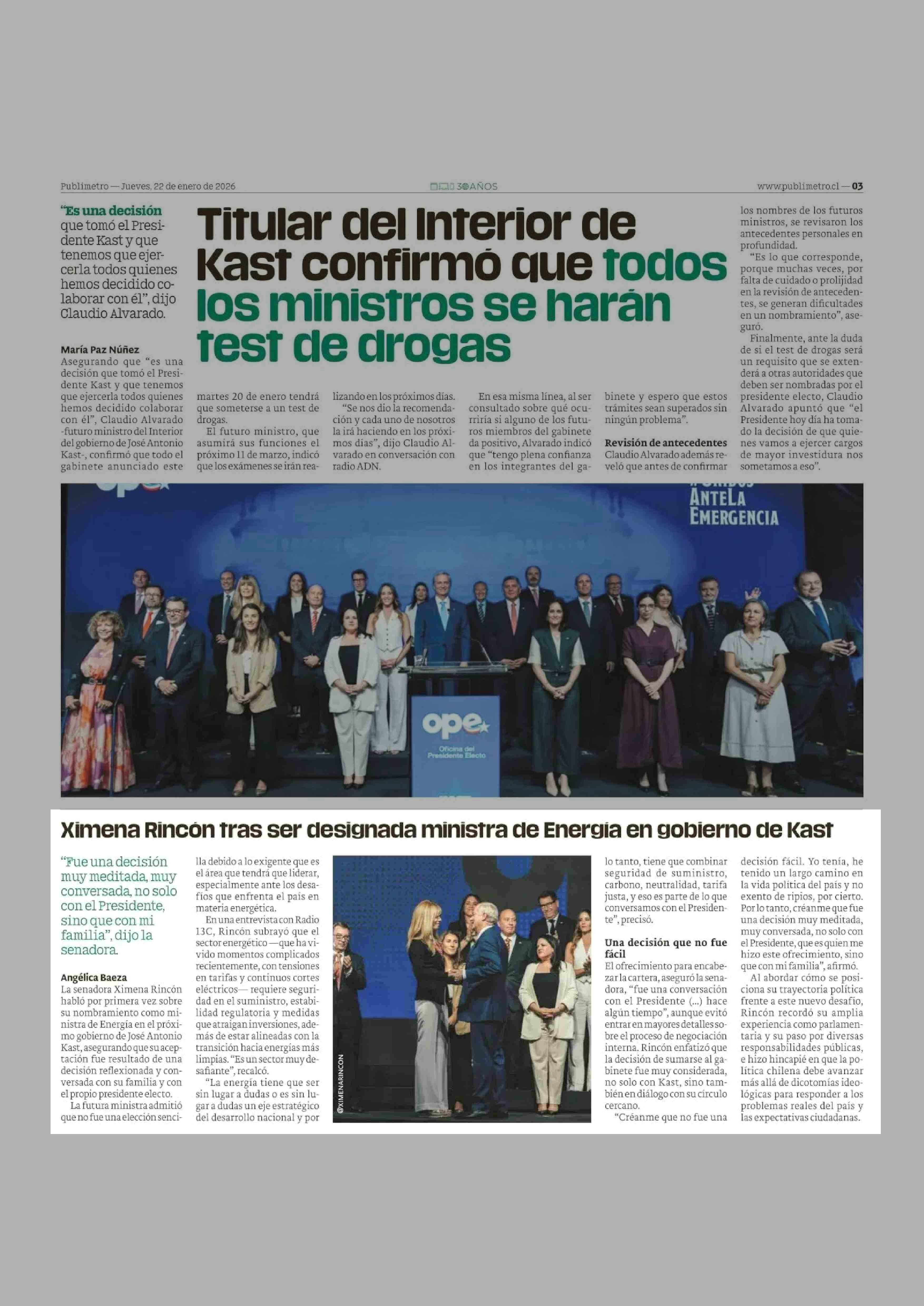 Ximena Rincon tras ser designada ministra de Energia en gobierno de Kast 22-01-2026 Publimetro |