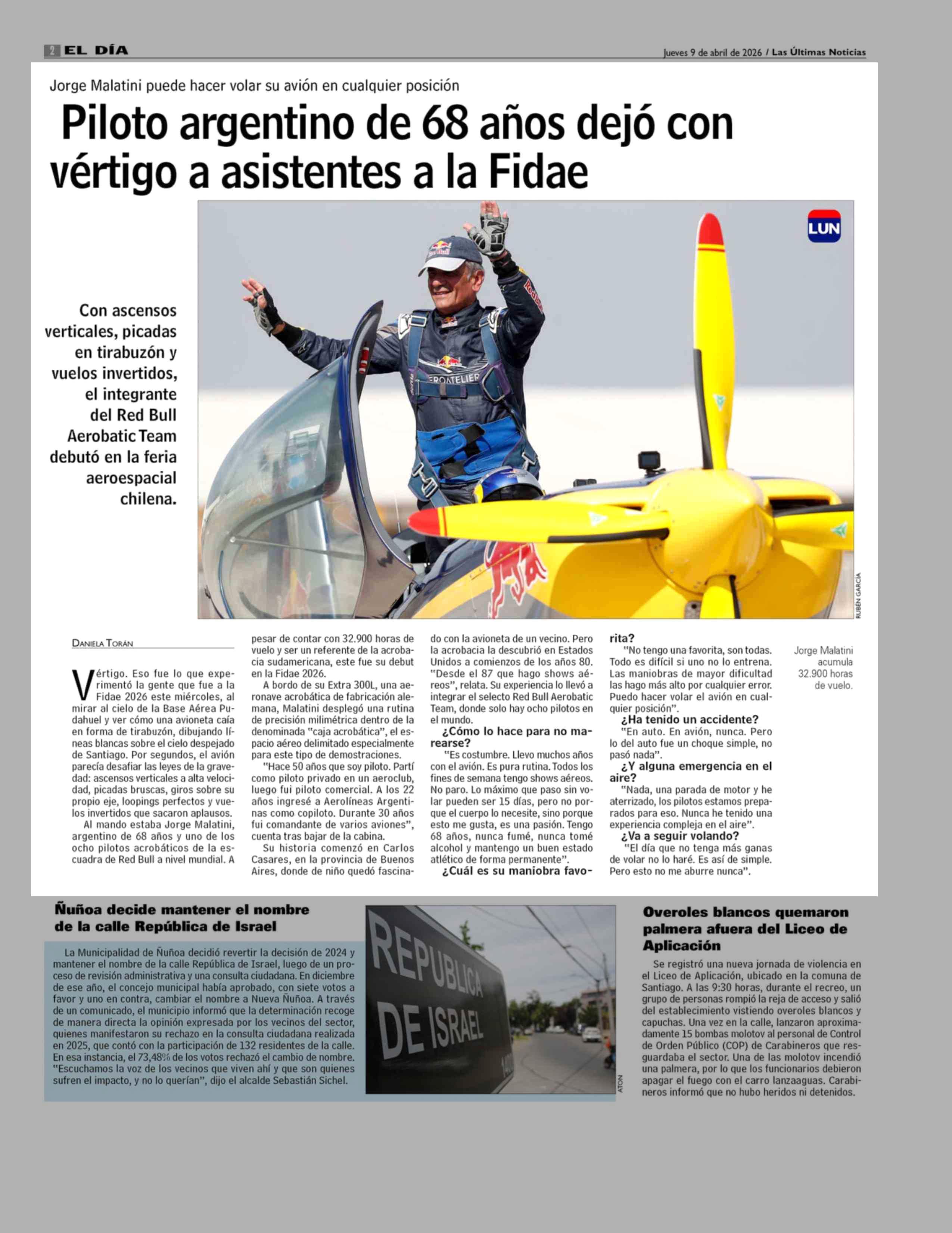 Piloto argentino de 68 años dejó con vértigo a asistentes a la Fidae 09-04-2026 Las Últimas Noticias |