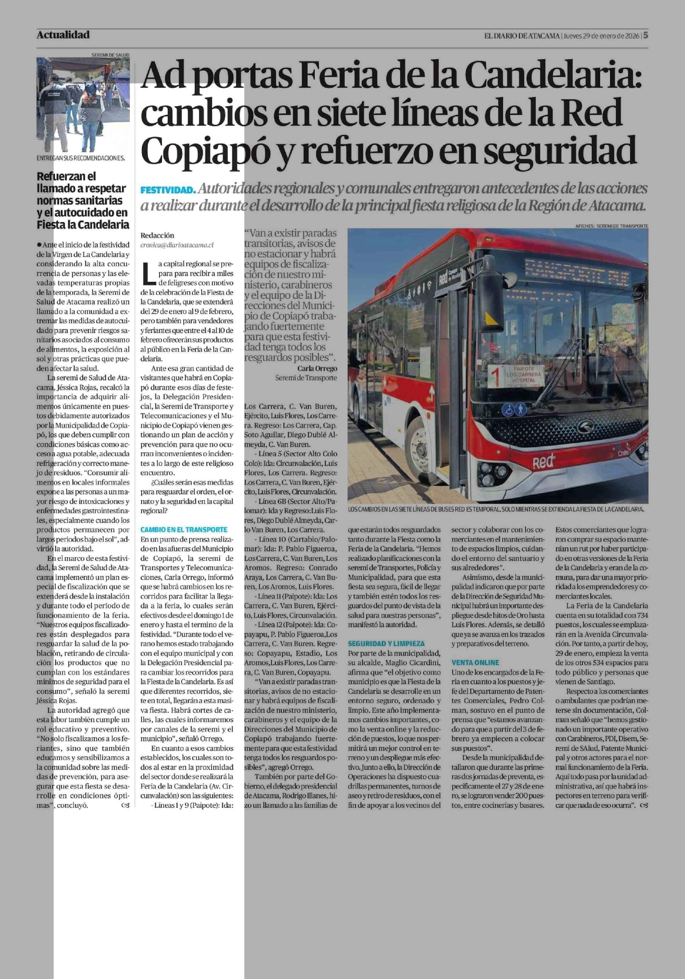 Refuerzan el llamado a respetar normas sanitarias y el autocuidado en Fiesta la Candelaria 29-01-2026 El Diario de Atacama |