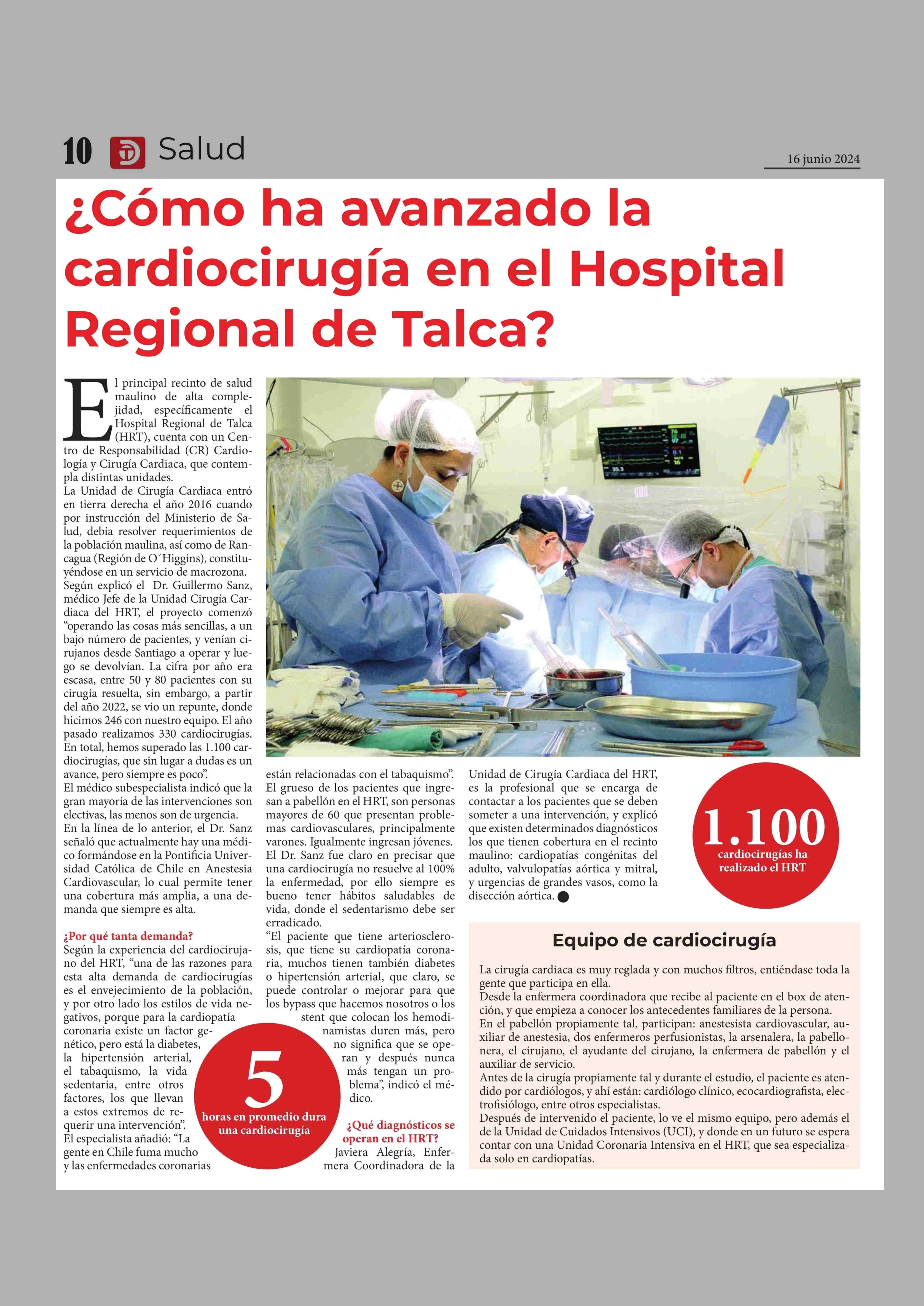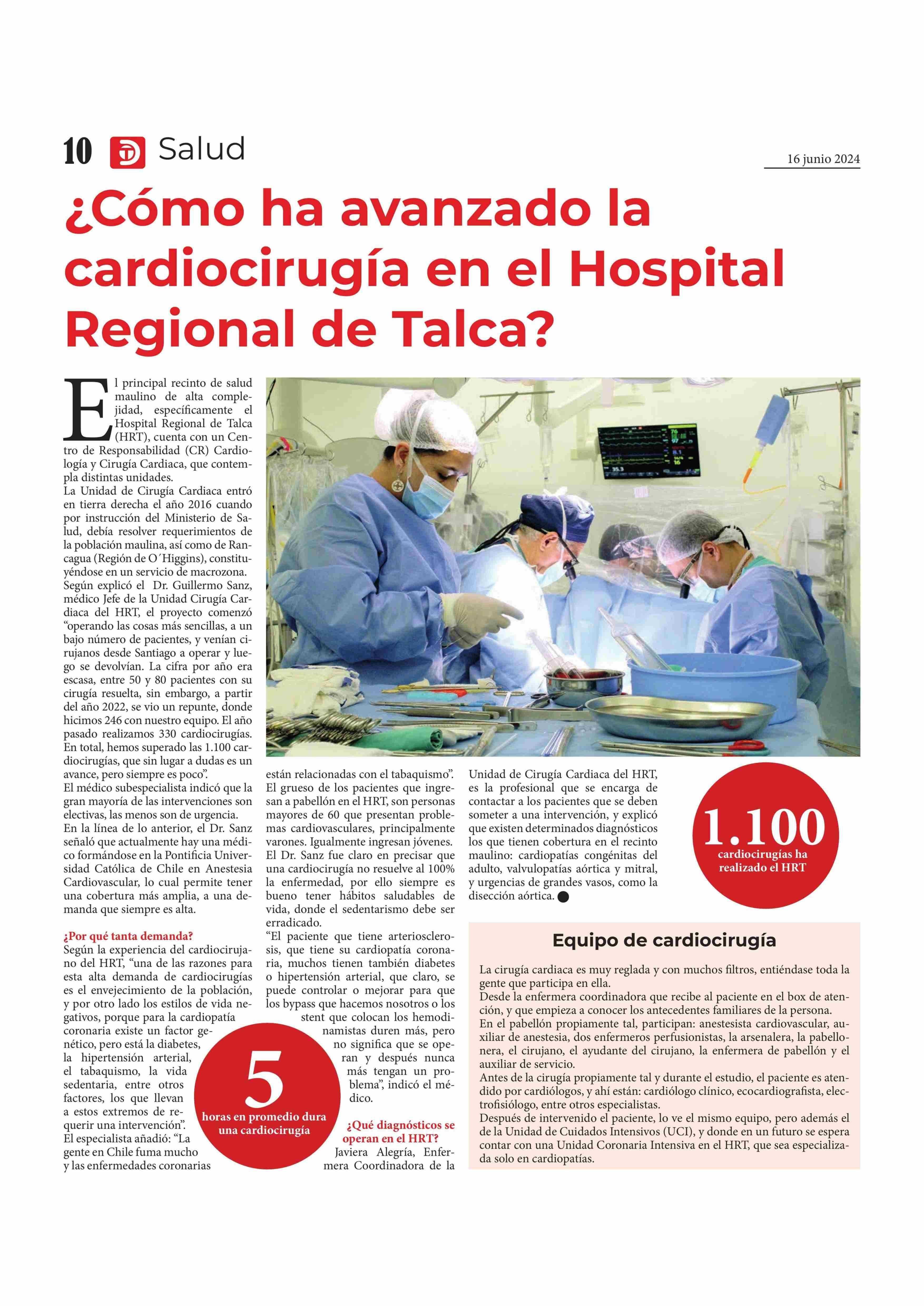 ¿Cómo ha avanzado la cardiocirugía en el Hospital Regional de Talca? 16-06-2024 Diario Talca |