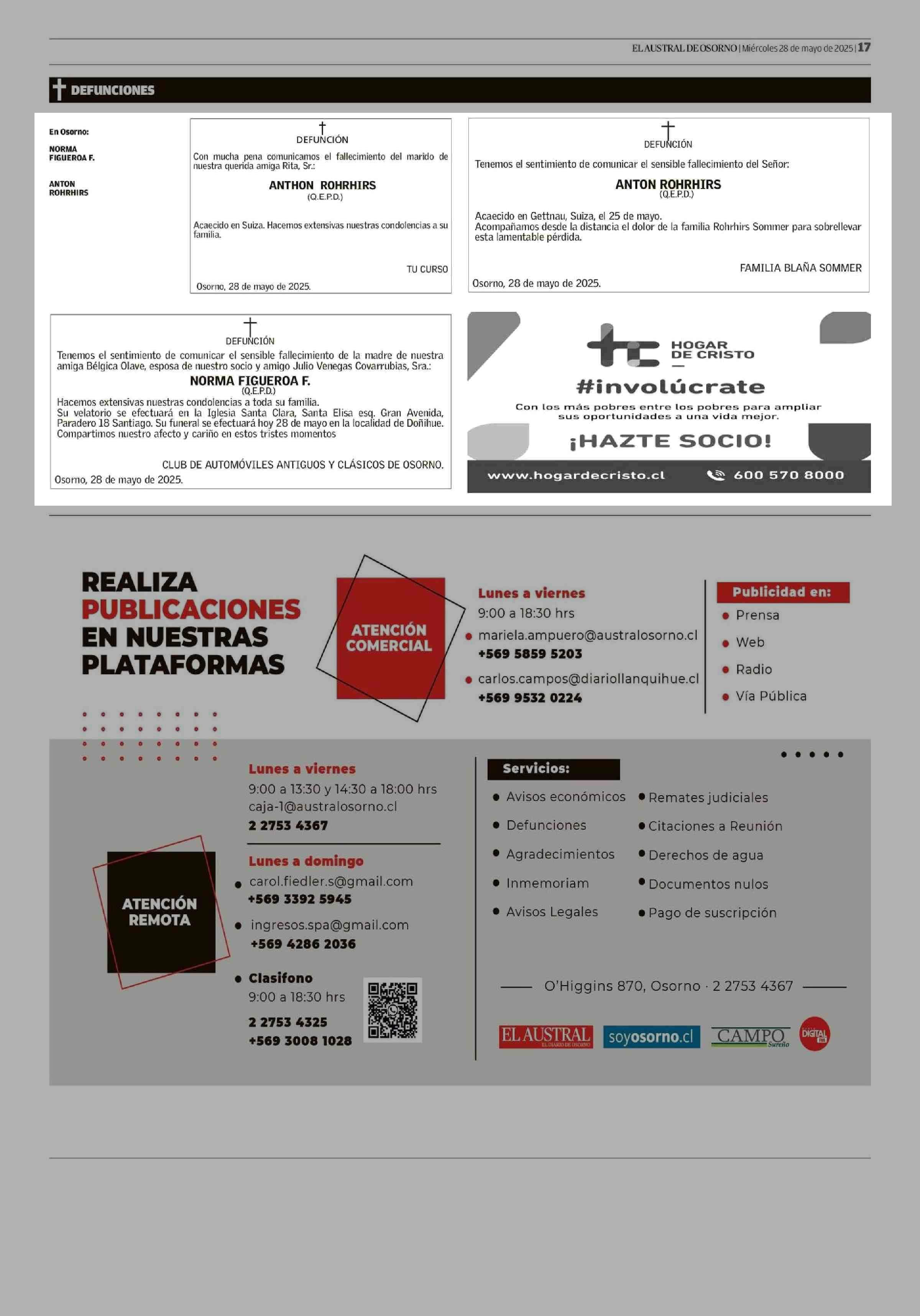 ¡HAZTE SOCIO! 28-05-2025 El Austral de Osorno |