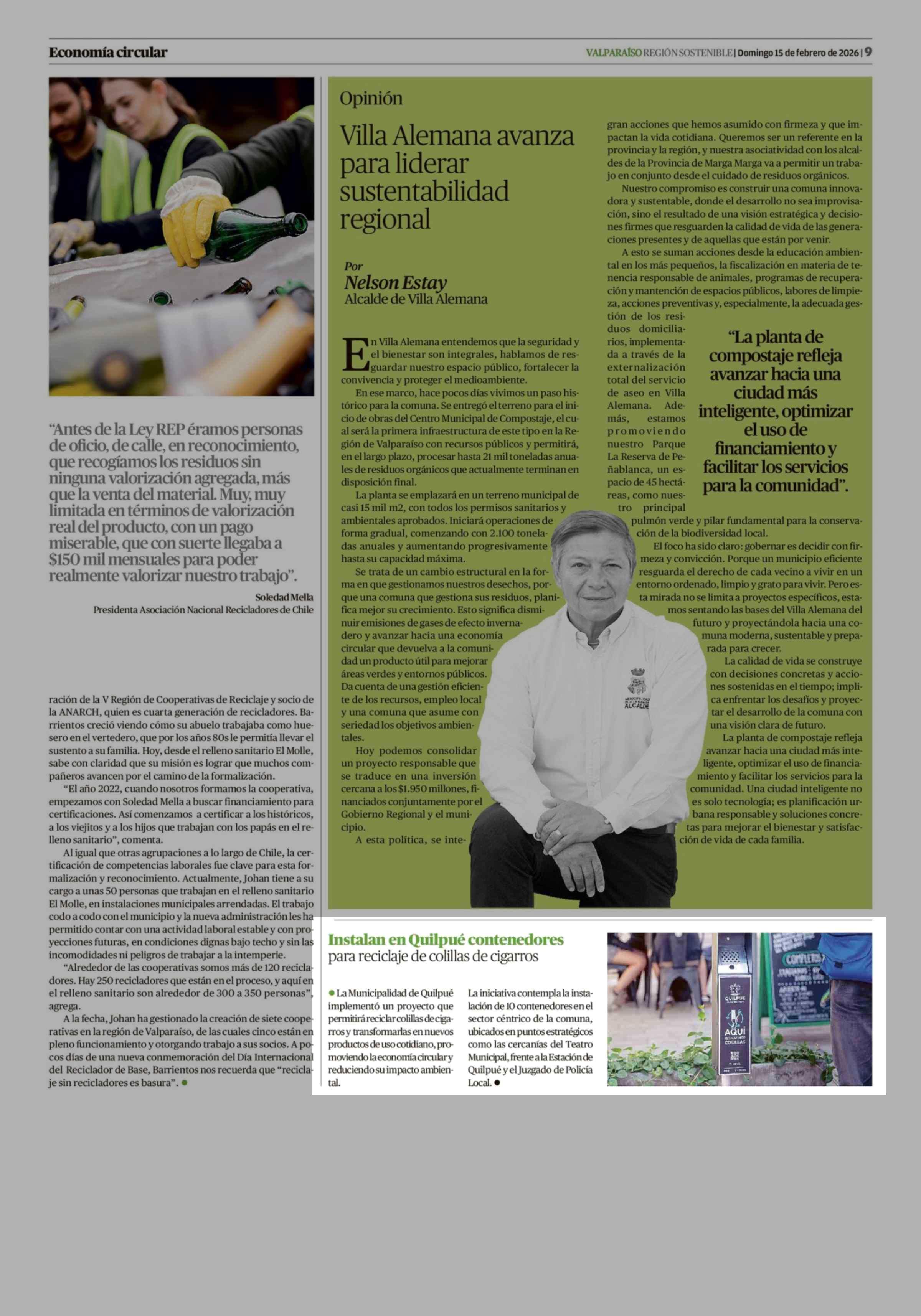 Instalan en Quilpué contenedores para reciclaje de colillas de cigarros 15-02-2026 El Mercurio de Valparaíso |