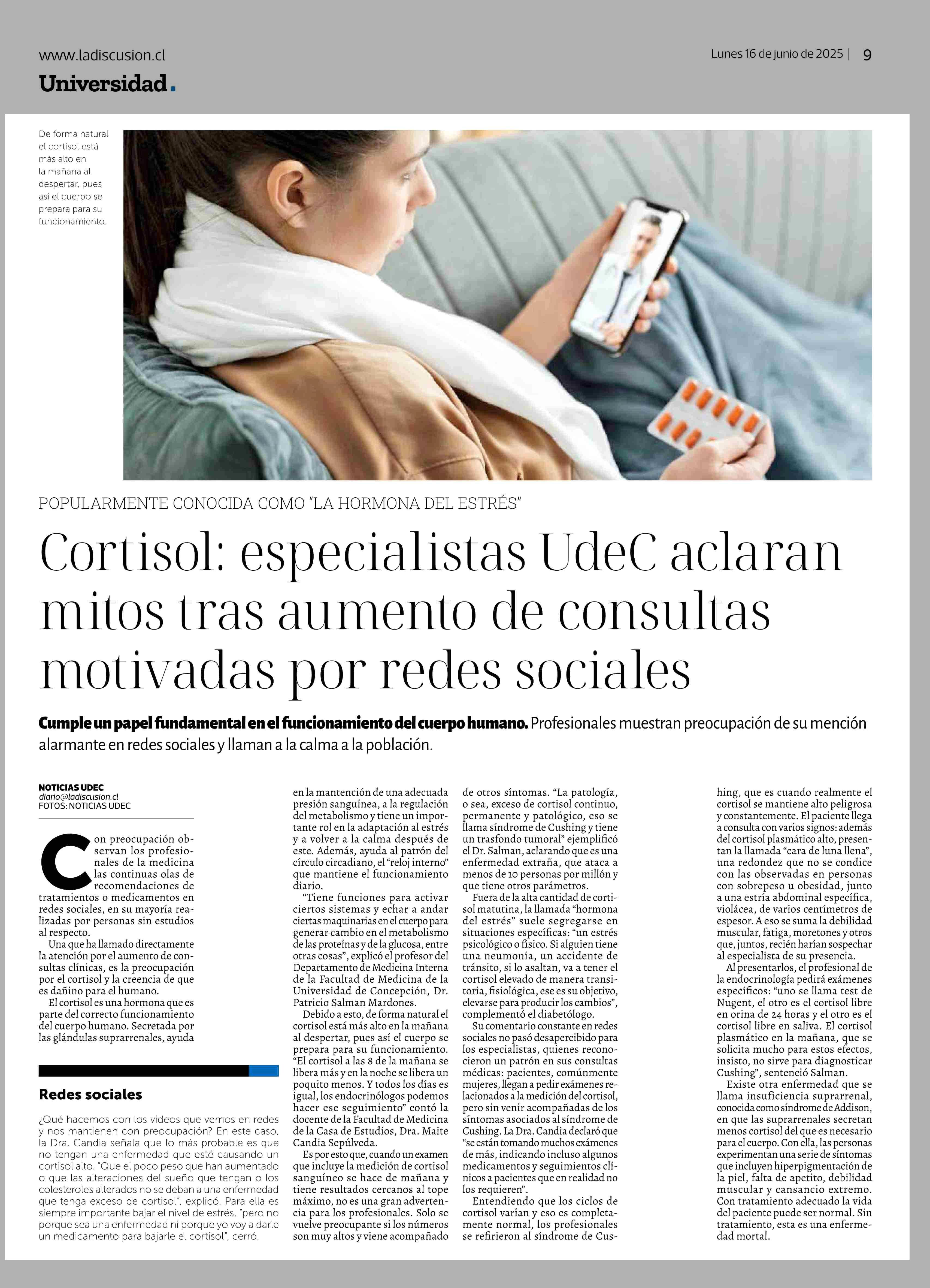 Cortisol: especialistas UdeC aclaran mitos tras aumento de consultas motivadas por redes sociales 16-06-2025 La Discusión |