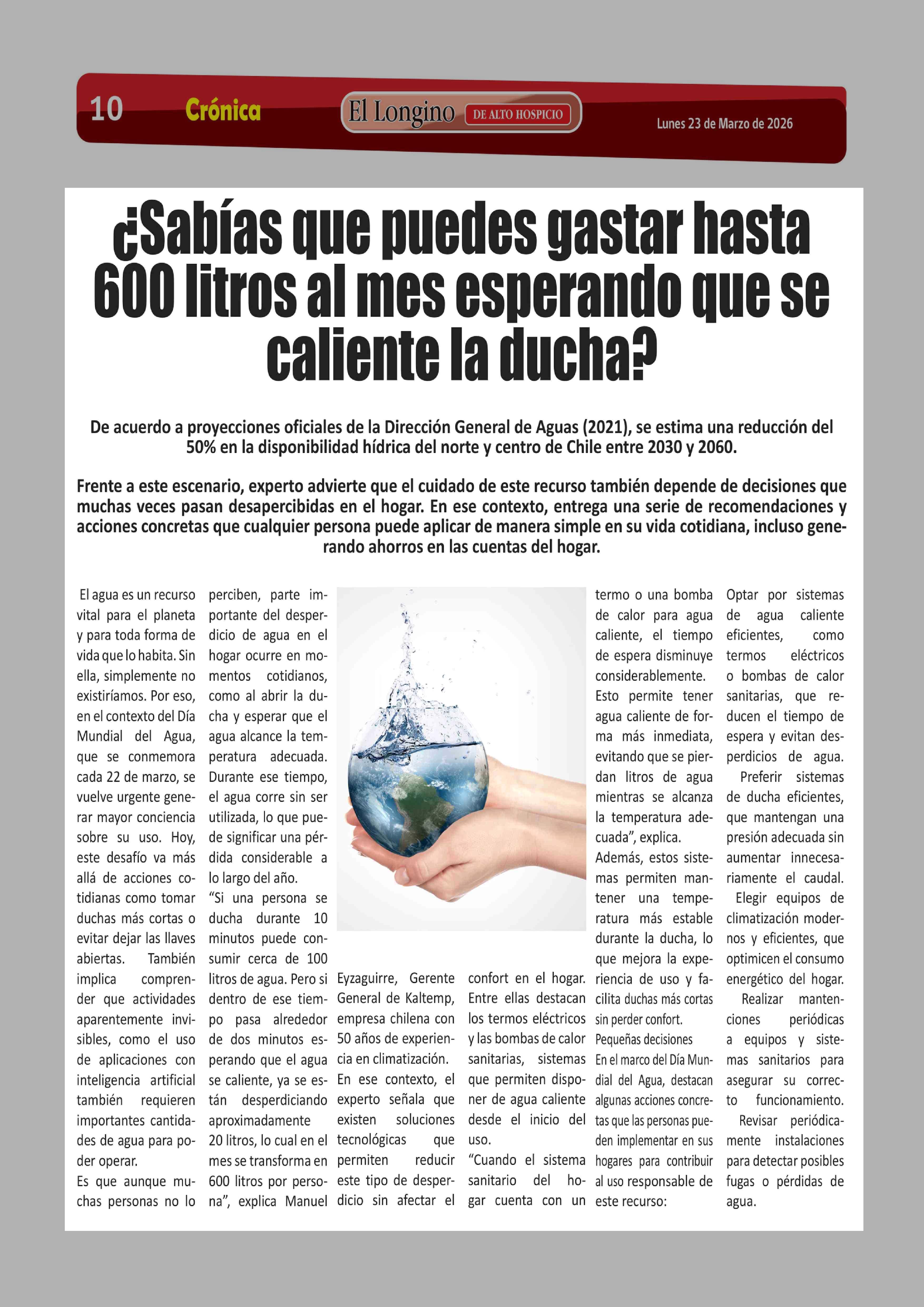 ¿Sabías que puedes gastar hasta 600 litros al mes esperando que se caliente la ducha? 23-03-2026 El Longino |