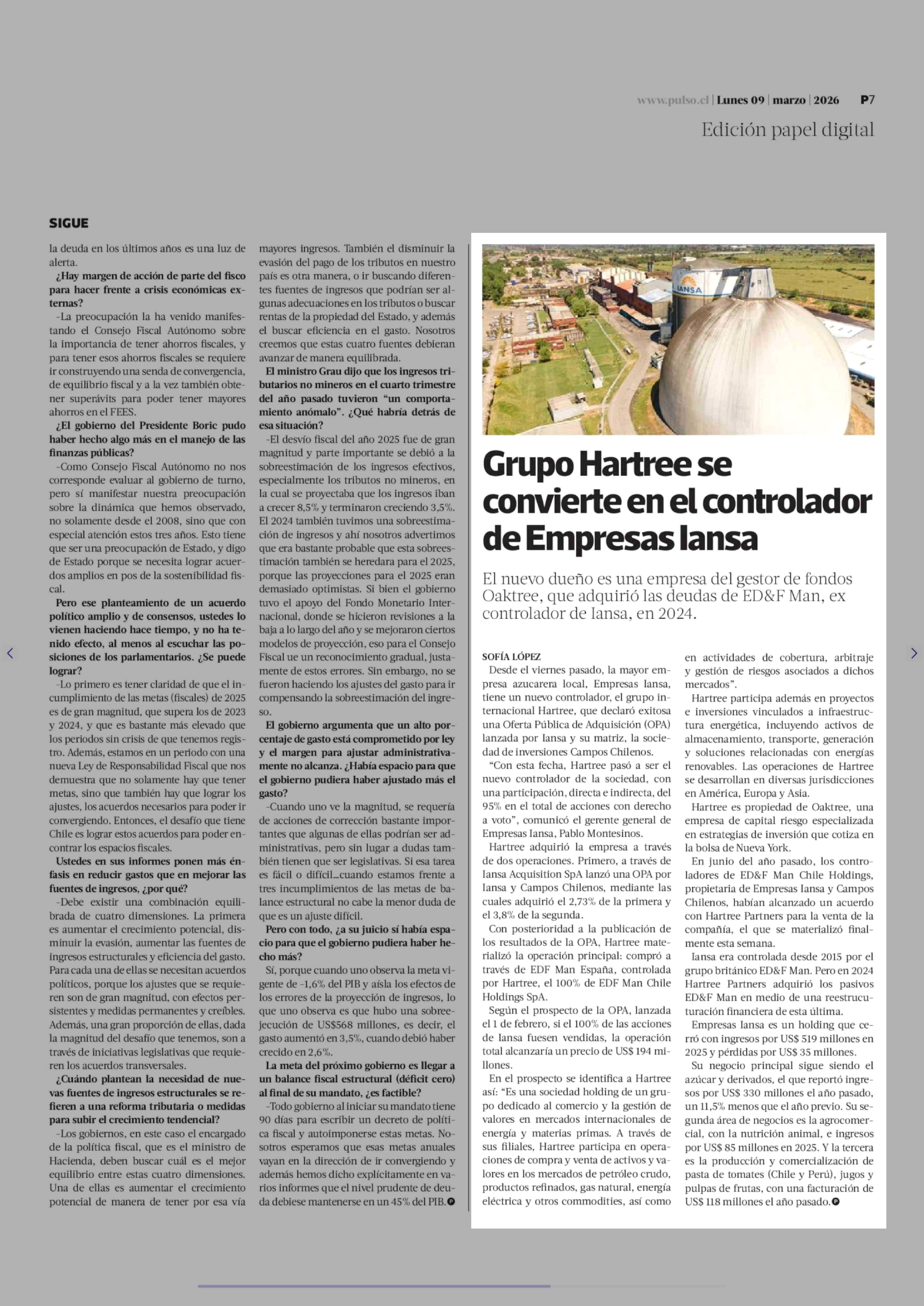 Título: Grupo Hartree se convierte en el controlador de Empresas lansa
