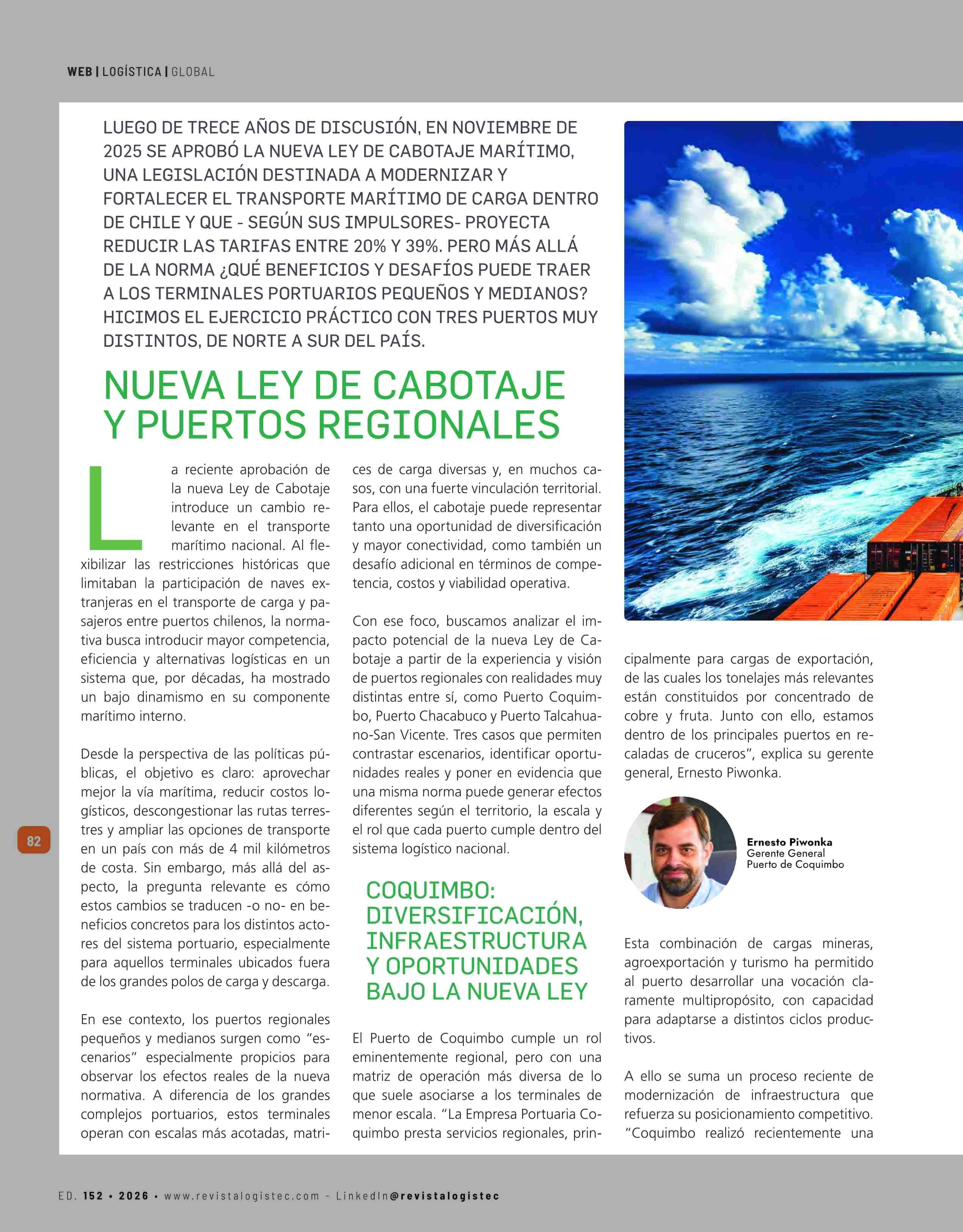 Título: NUEVA LEY DE CABOTAJE Y PUERTOS REGIONALES