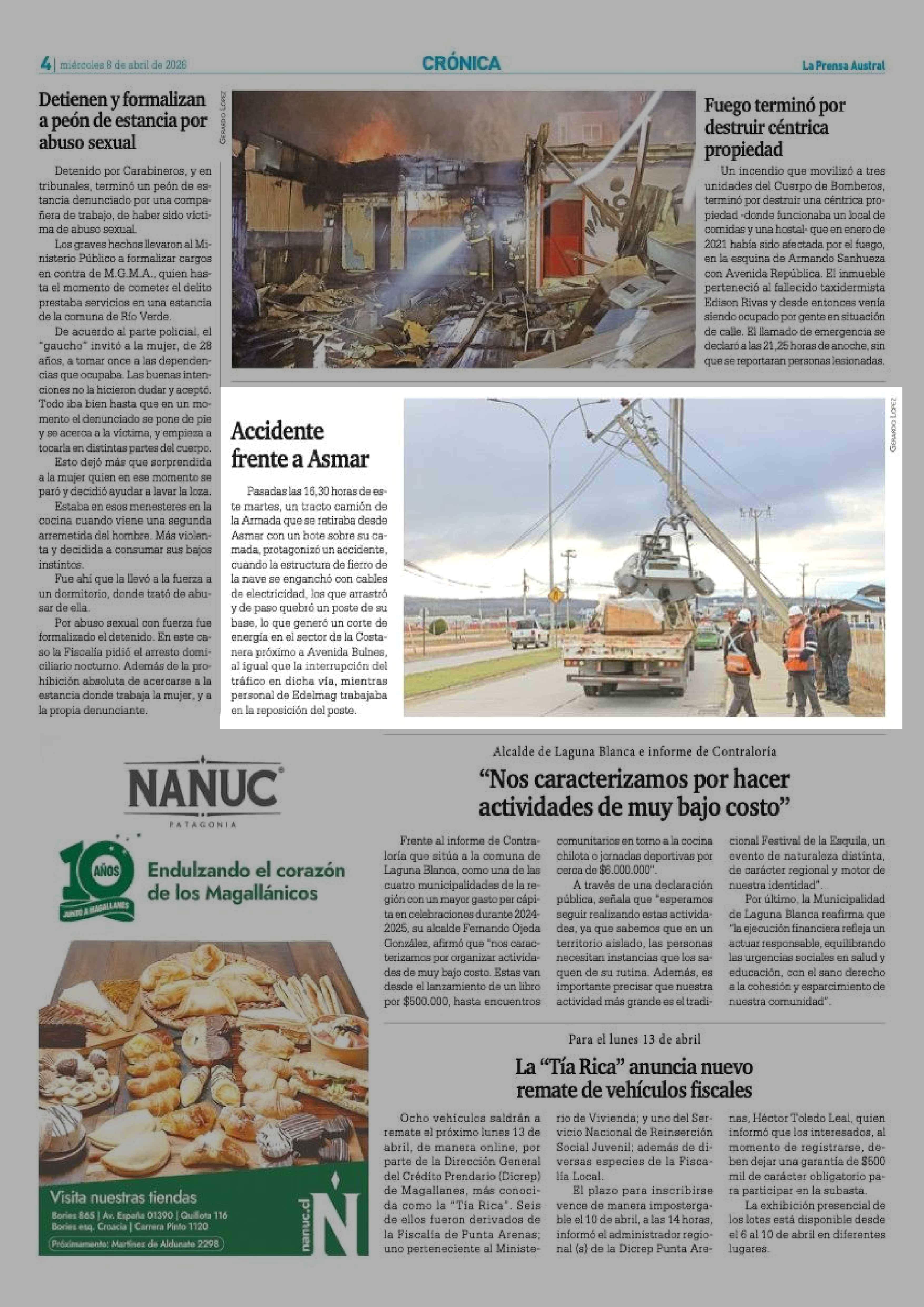 | Fecha: | 08-04-2026 | Sector: | Noticia general | Región: | Región de Magallanes y de la Antártica Chilena |