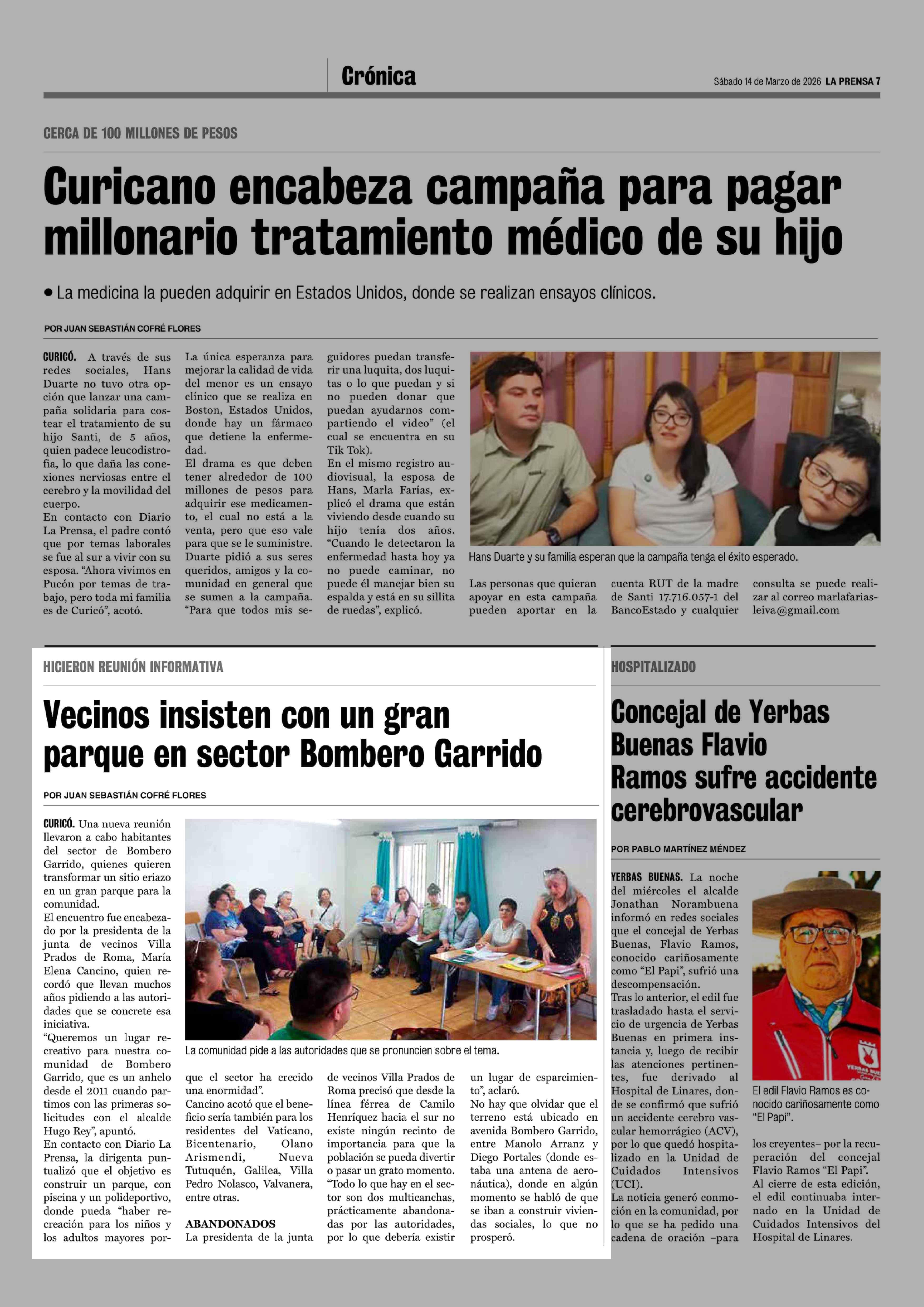 Vecinos insisten con un gran parque en sector Bombero Garrido 14-03-2026 La Prensa de Curicó |