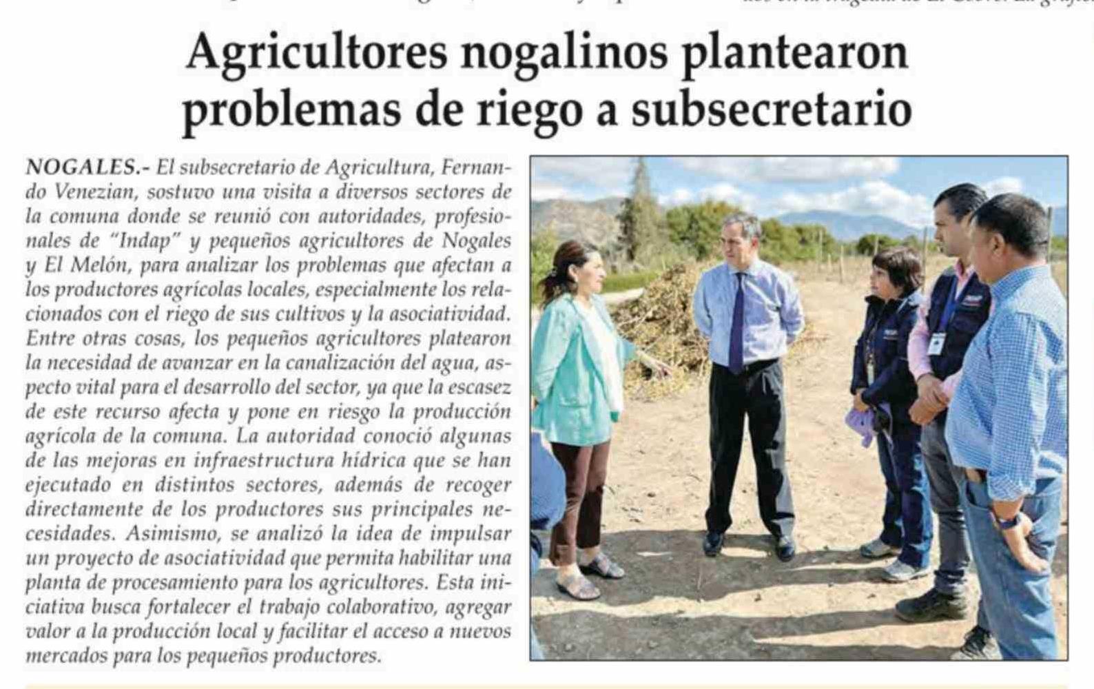 Agricultores nogalinos plantearon problemas de riego a subsecretario 27-03-2026 El Observador |