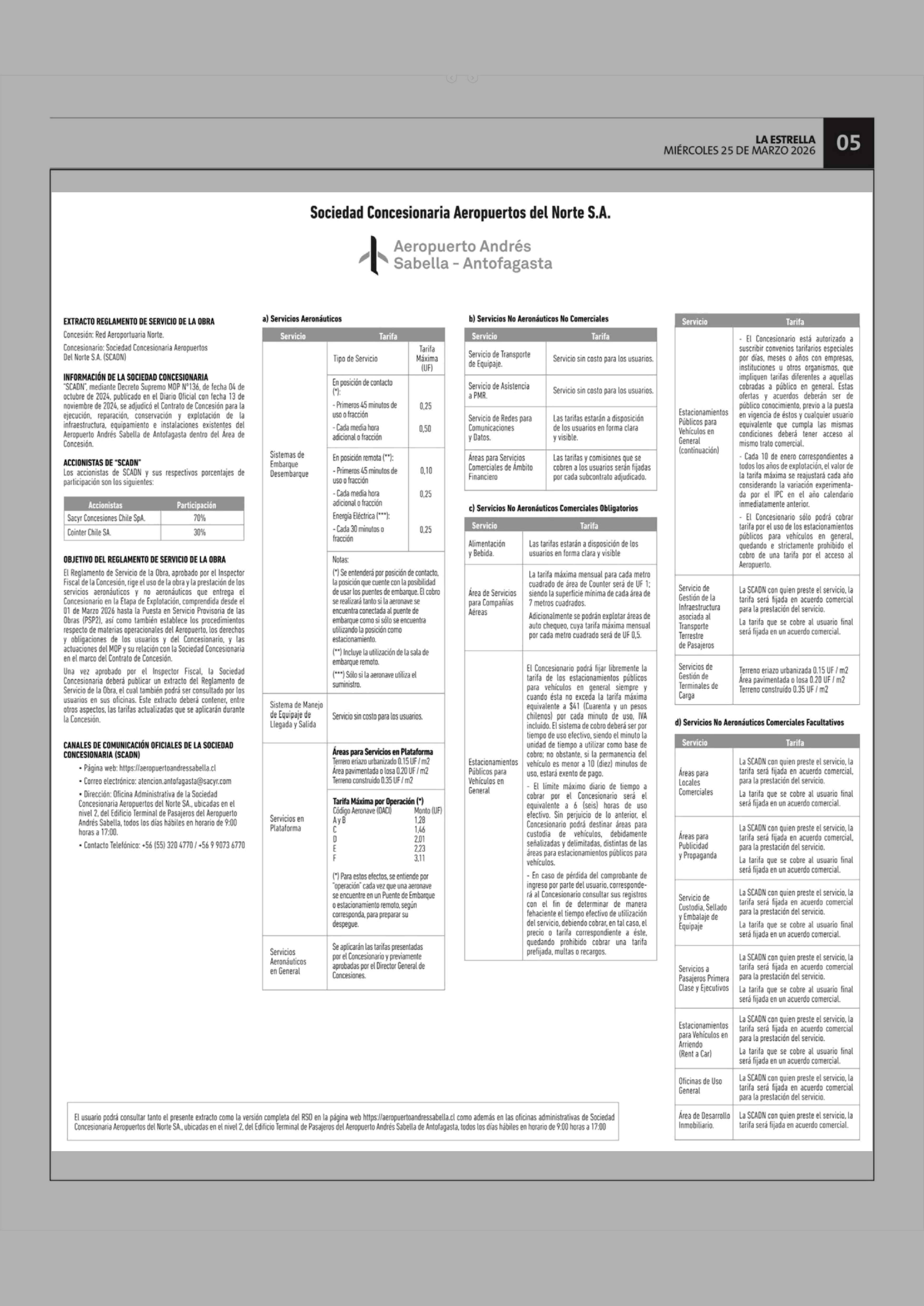 Extractos: Sociedad Concesionaria Aeropuertos del Norte S.A. Aeropuerto Andrés Sabella - Antofagasta 25-03-2026 La Estrella de Antofagasta |