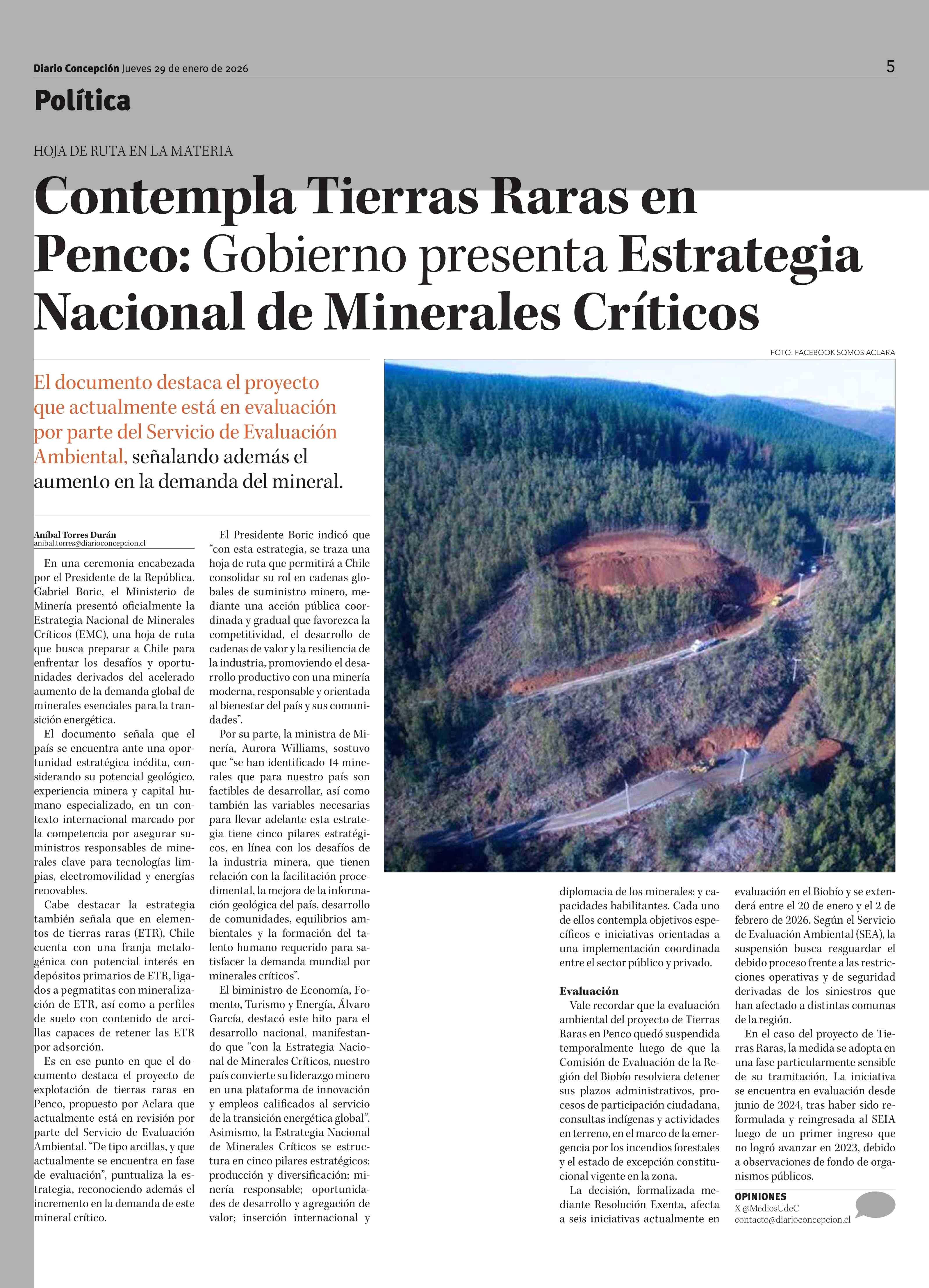 Título: Contempla Tierras Raras en Penco: Gobierno presenta Estrategia Nacional de Minerales Críticos