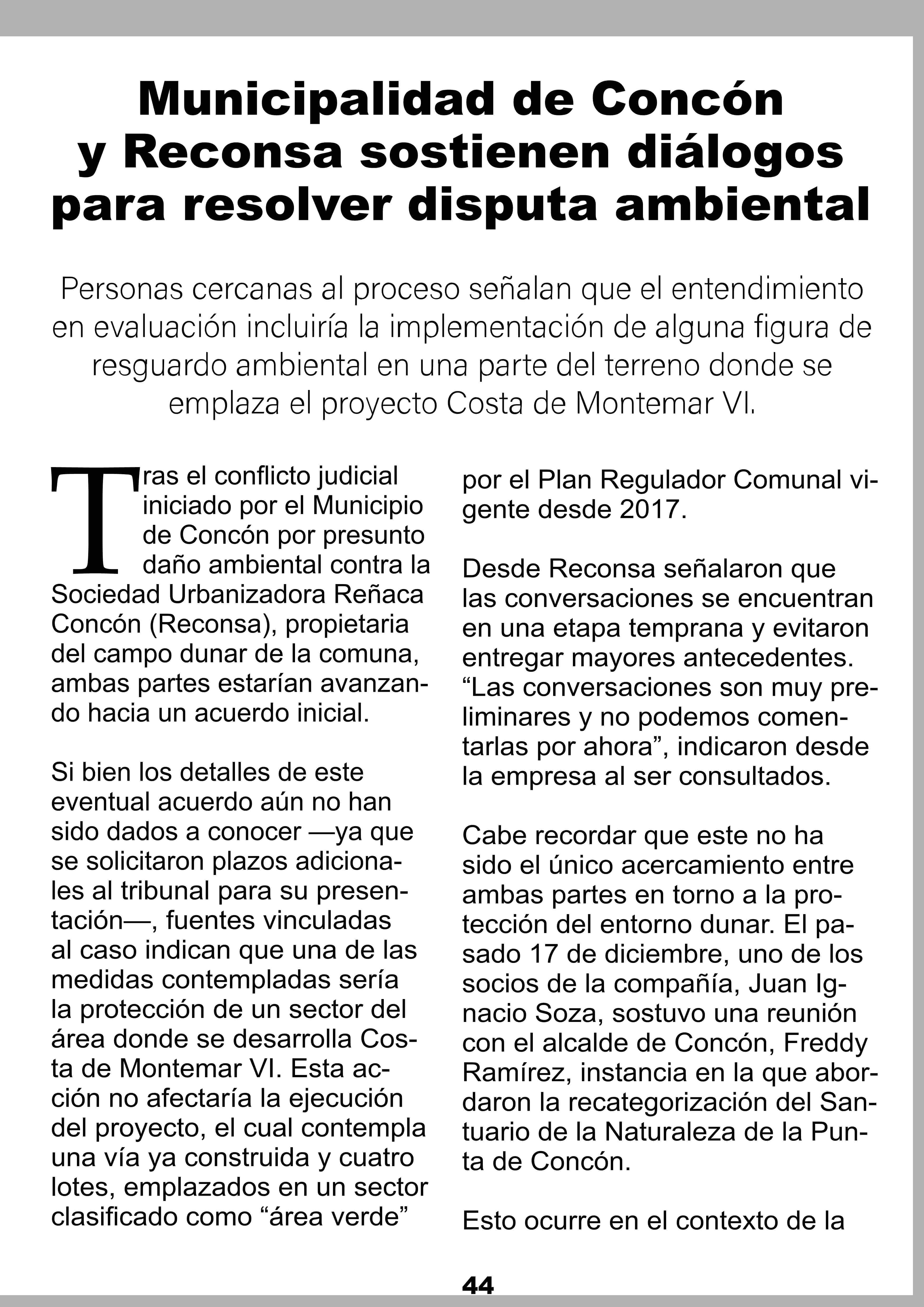 Título: Municipalidad de Concón y Reconsa sostienen diálogos para resolver disputa ambiental