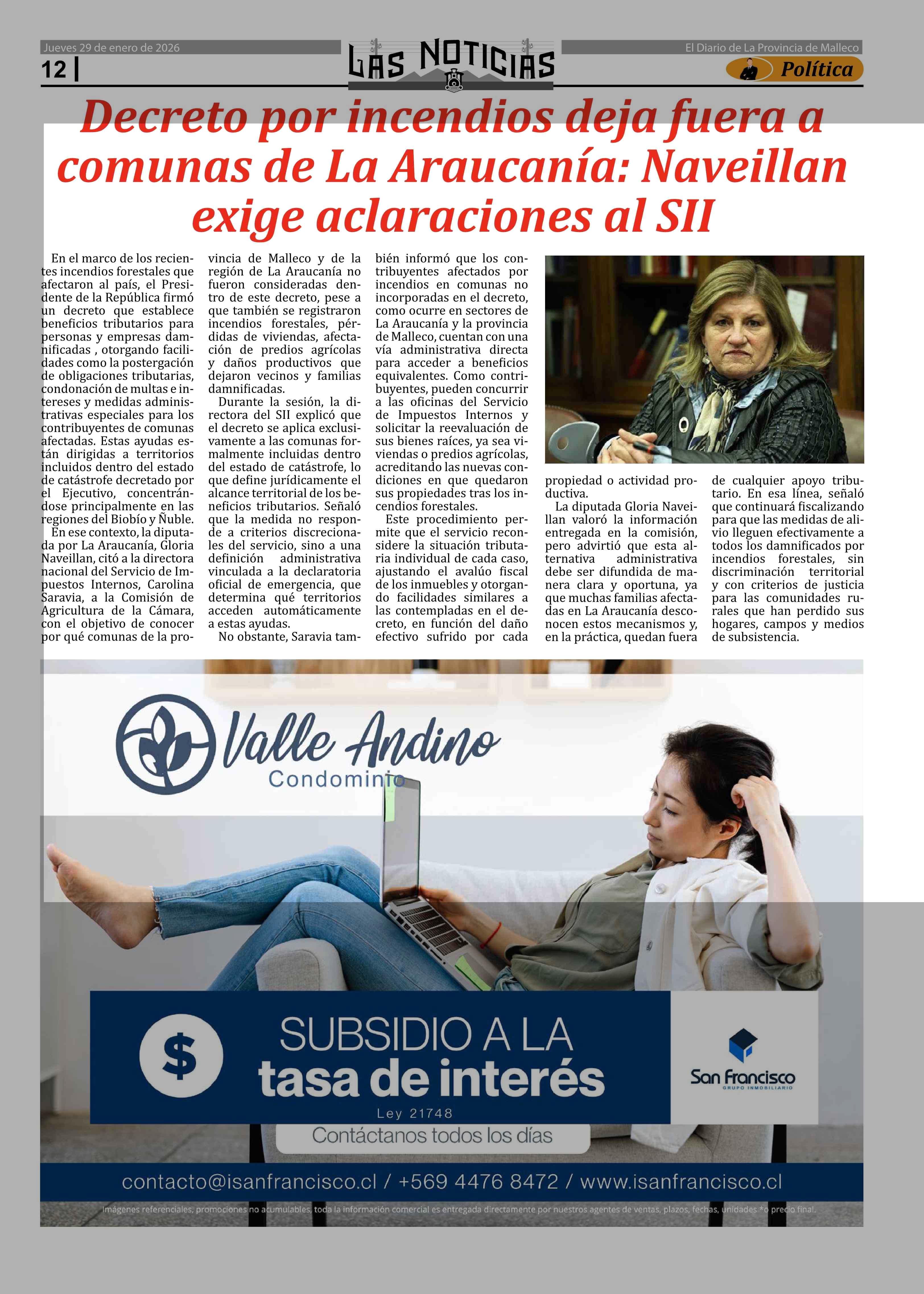 Título: Decreto por incendios deja fuera a comunas de La Araucanía: Naveillan exige aclaraciones al SII