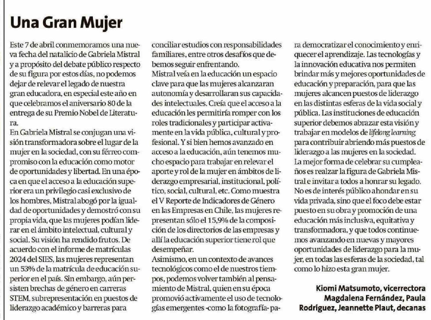 Columnas de Opinión: Una Gran Mujer 07-04-2025 El Líder |