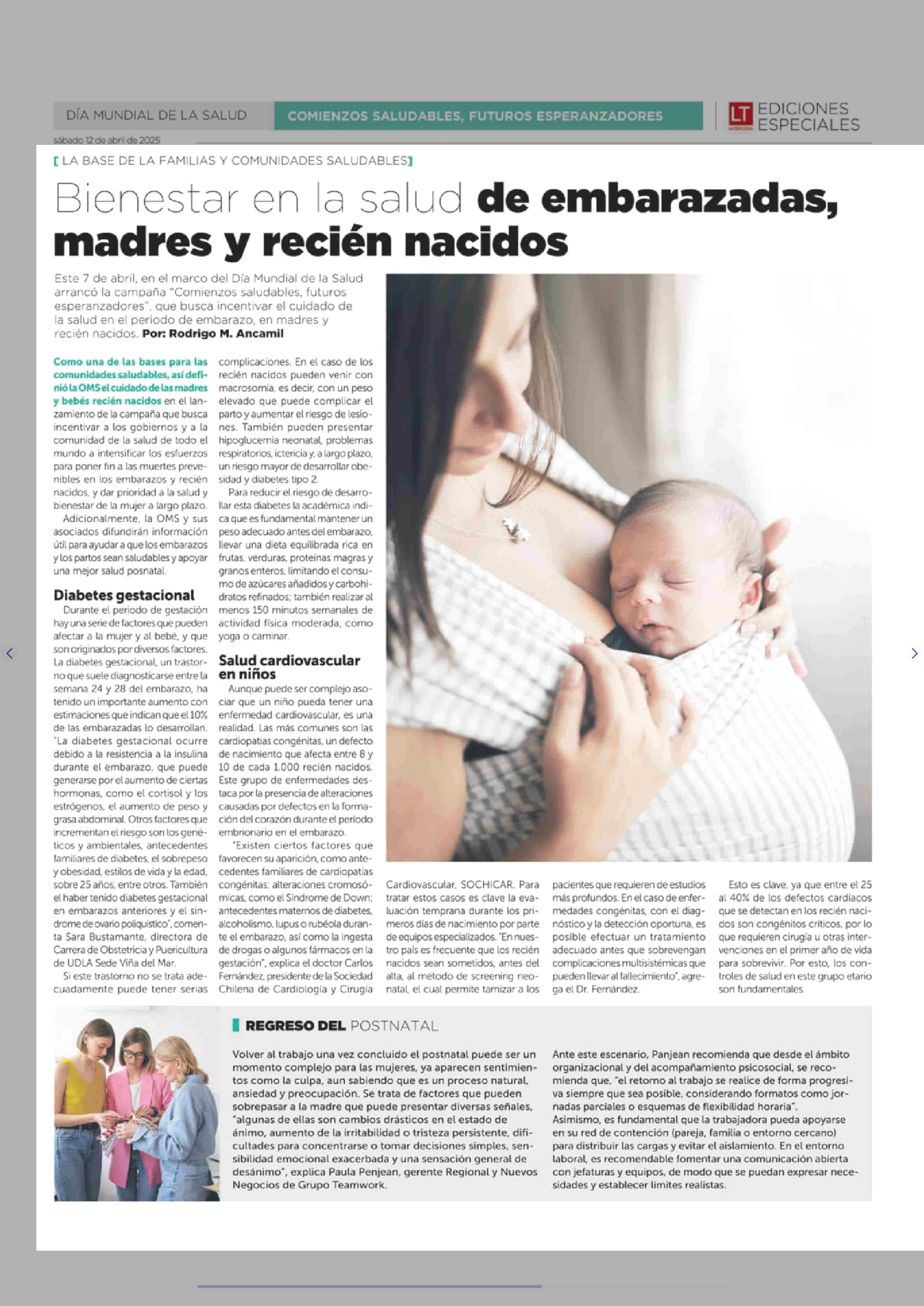 Bienestar en la saluda de embarazadas, madres y recién nacidos 12-04-2025 La Tercera |