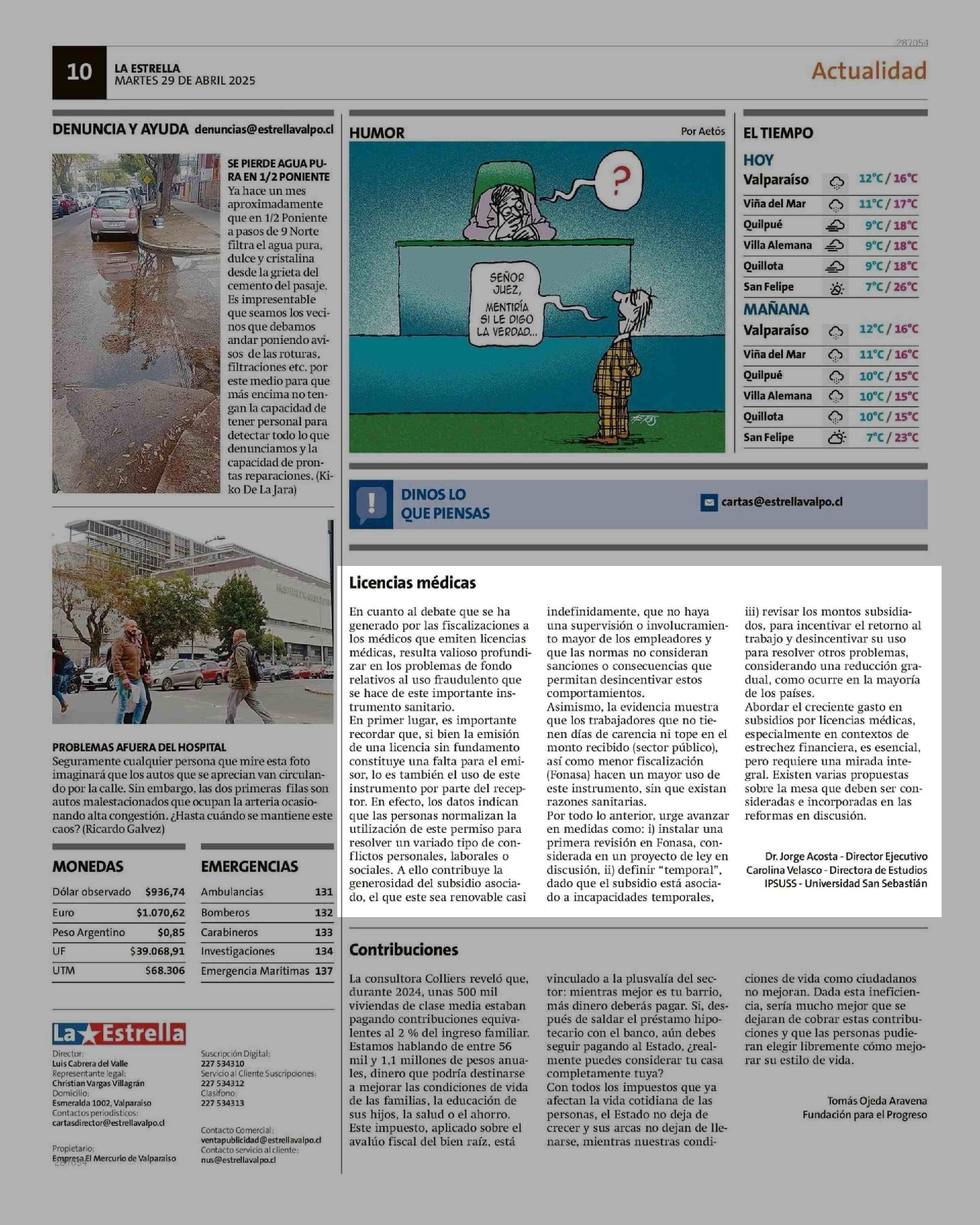 CARTAS: Licencias médicas 29-04-2025 La Estrella de Valparaíso |