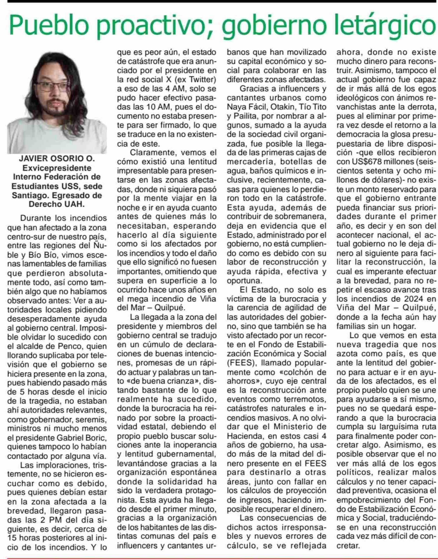 Título: Pueblo proactivo; gobierno letárgico
