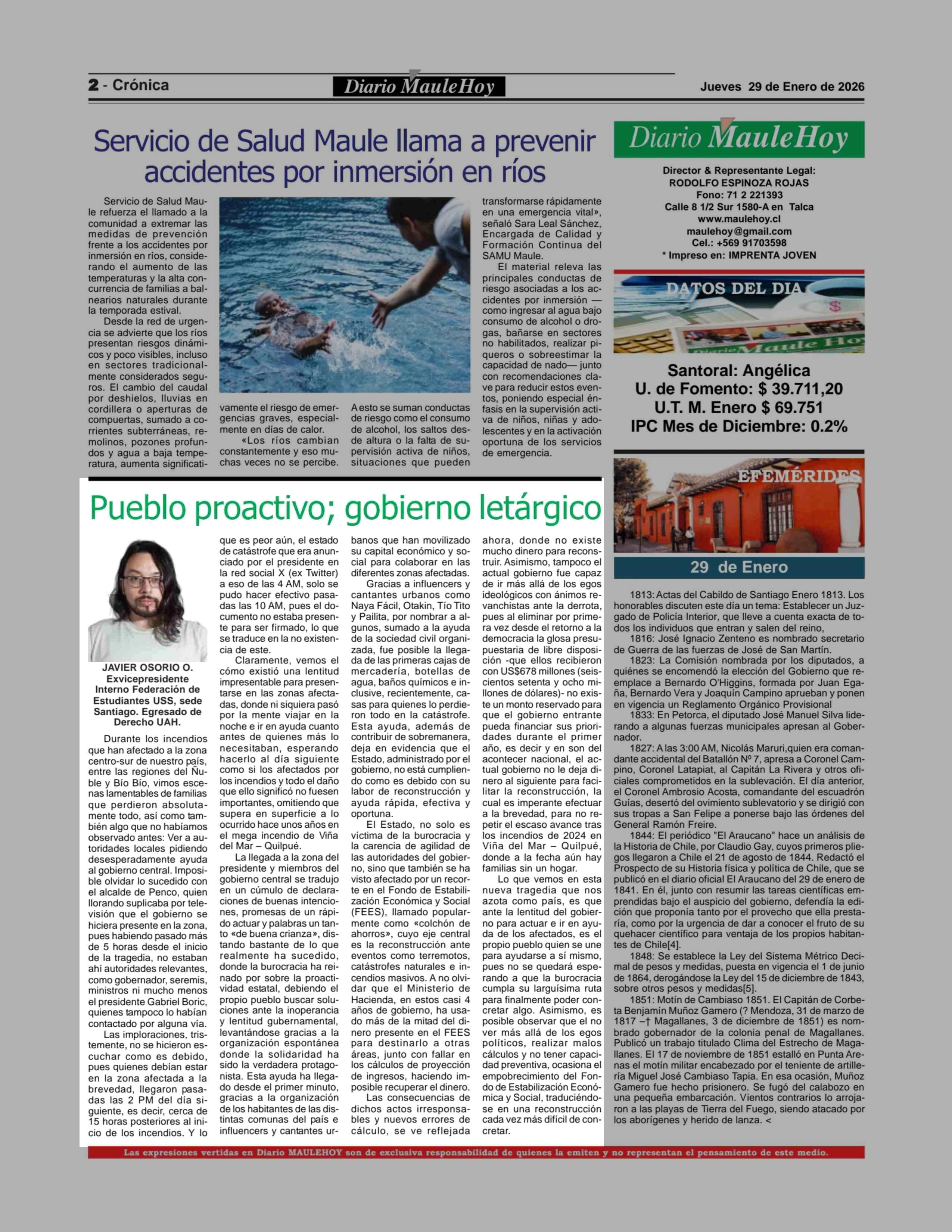 Fecha: 29-01-2026 Sector: Noticia general Región: Región del Maule