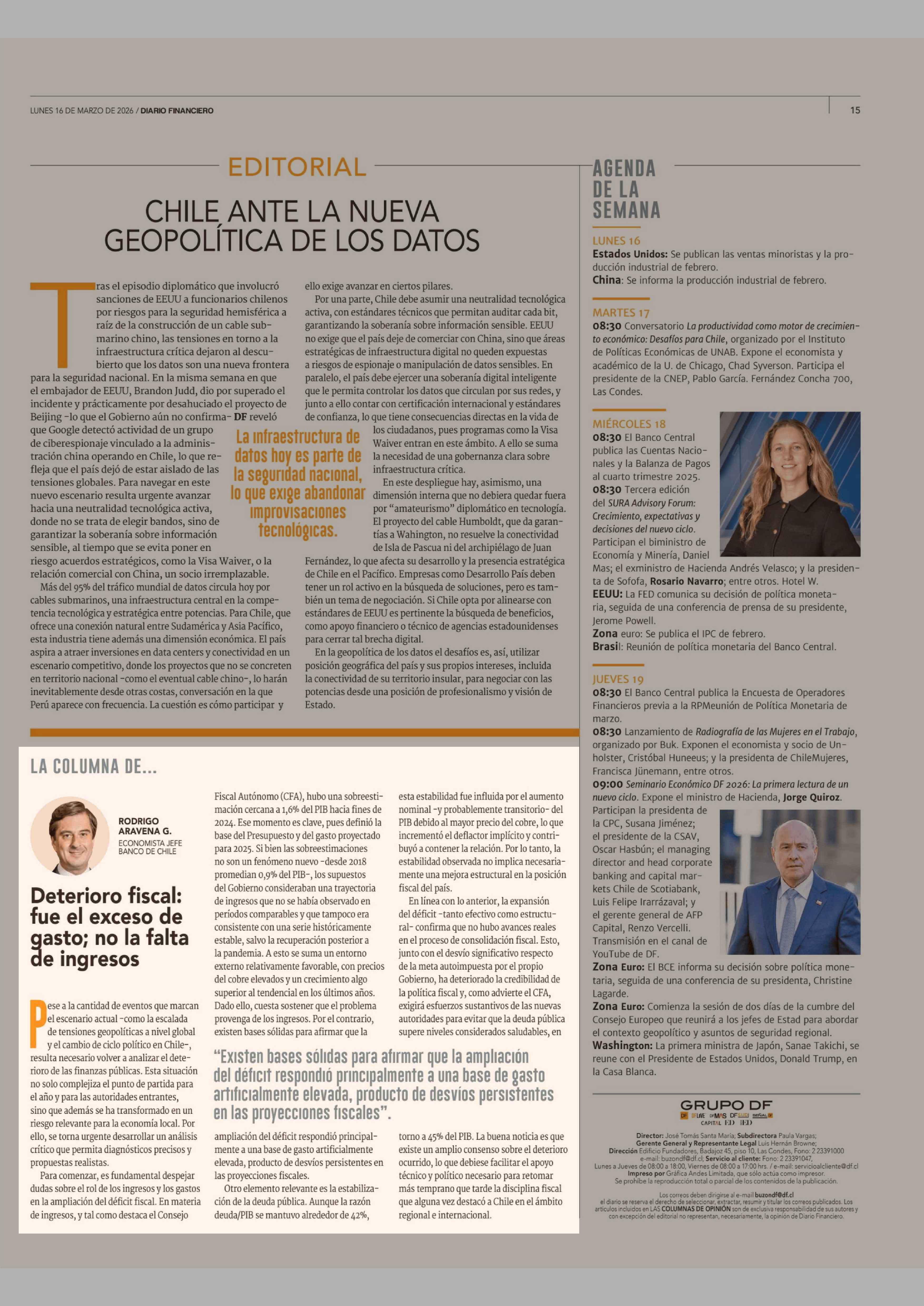 Columnas de Opinión: Deterioro fiscal: fue el exceso de gasto; no la falta de ingresos 16-03-2026 Diario Financiero |