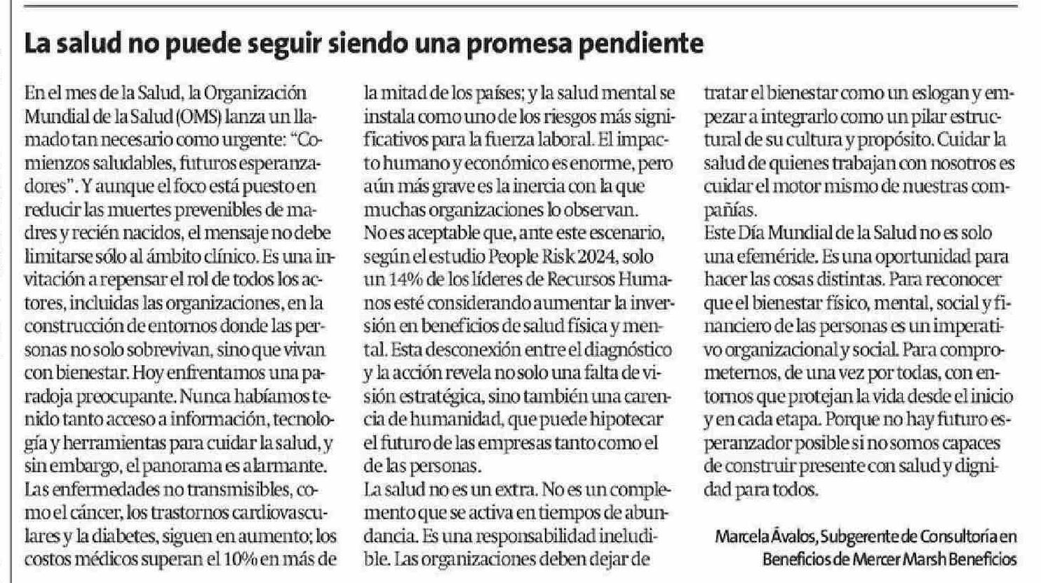 | Título: | La salud no puede seguir siendo una promesa pendiente |