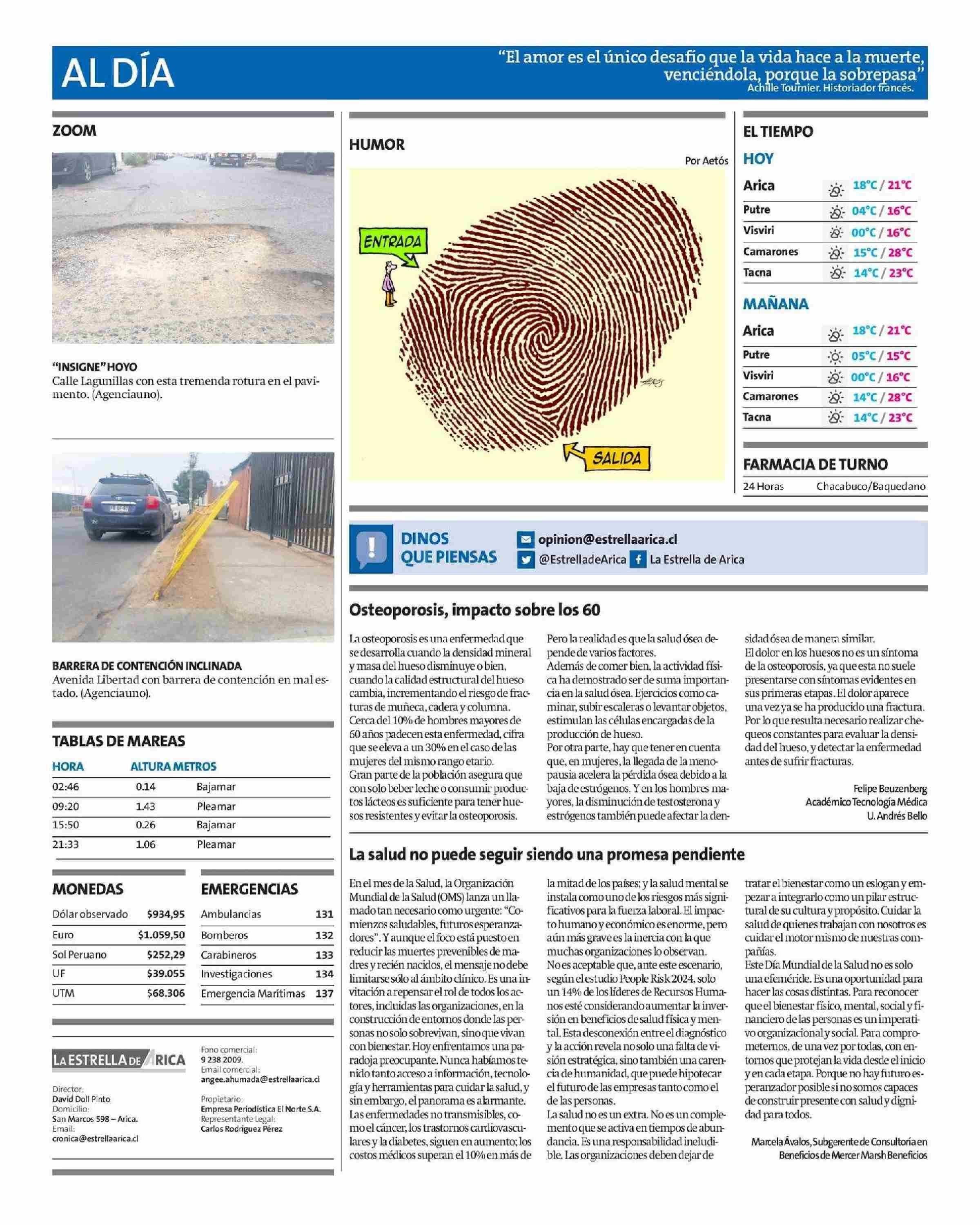 La salud no puede seguir siendo una promesa pendiente 28-04-2025 La Estrella de Arica |