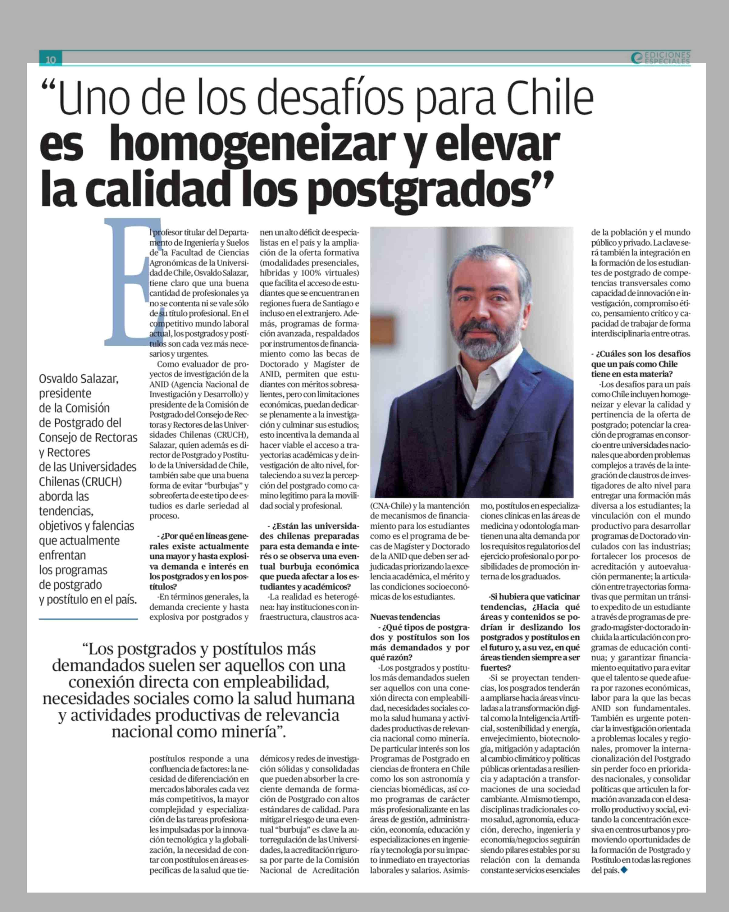 Título: "Uno de los desafíos para Chile es homogeneizar y elevar la calidad los postgrados"