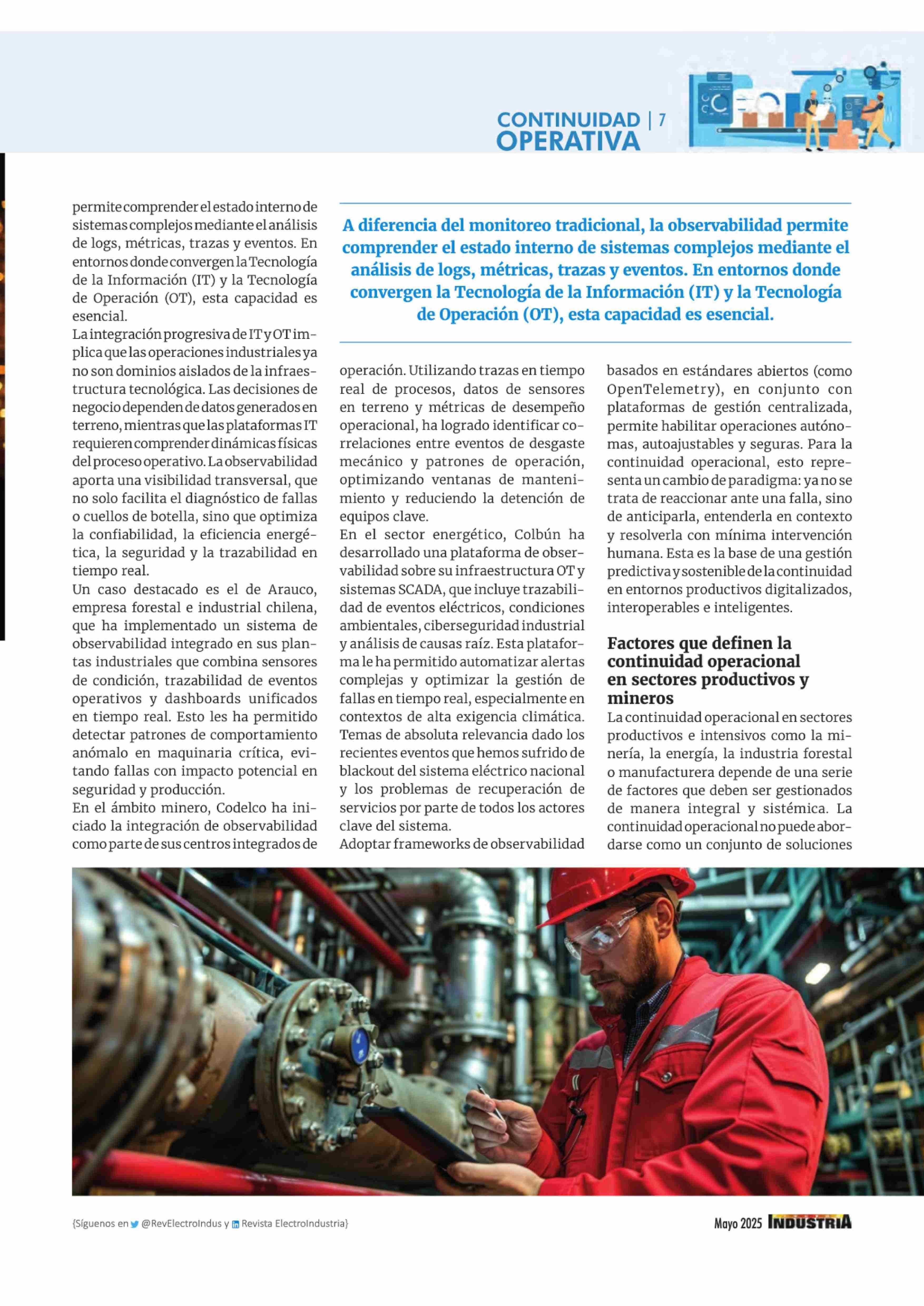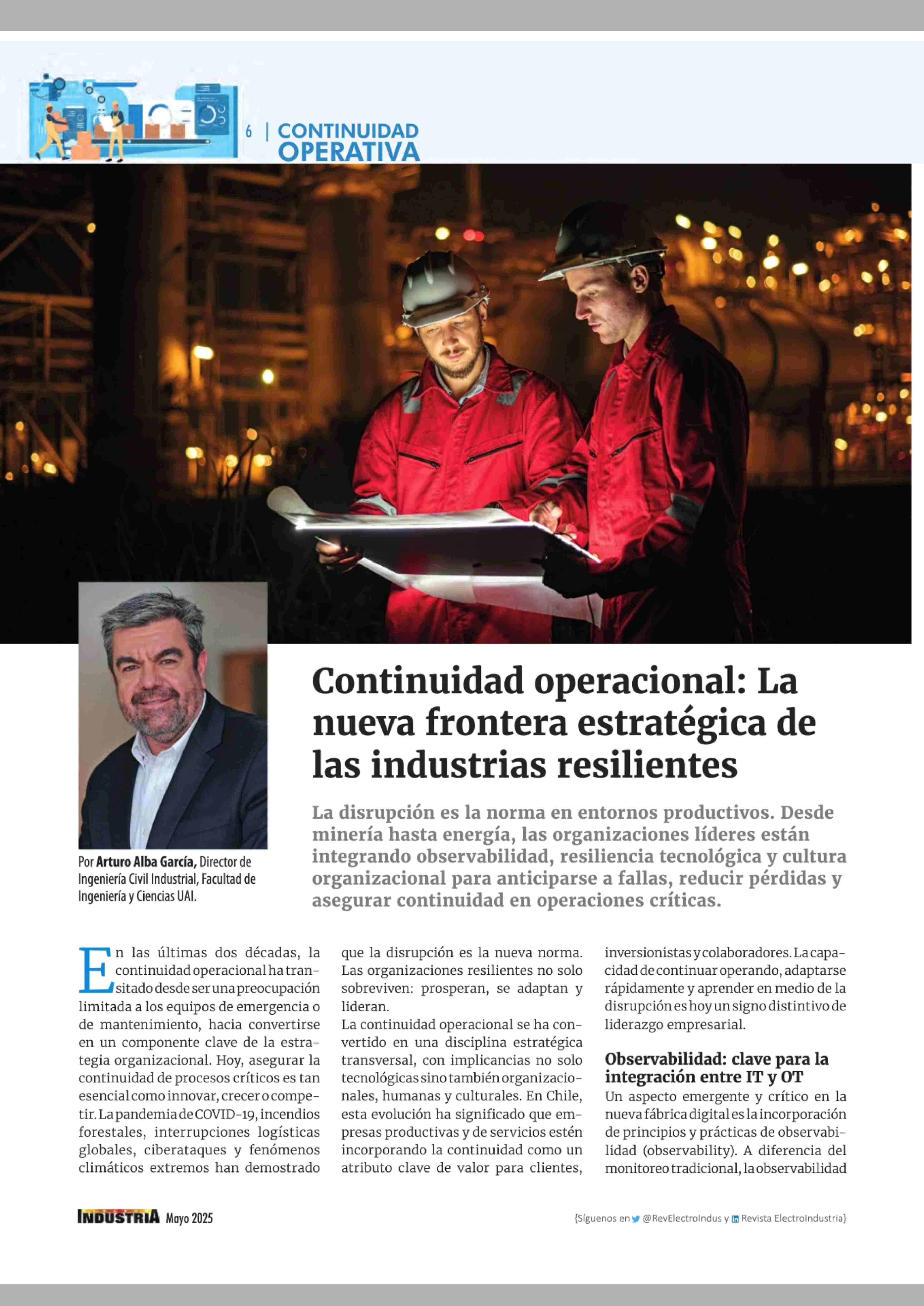 Continuidad operacional: La nueva frontera estratégica de las industrias resilientes 30-05-2025 Revista Electro Industria |