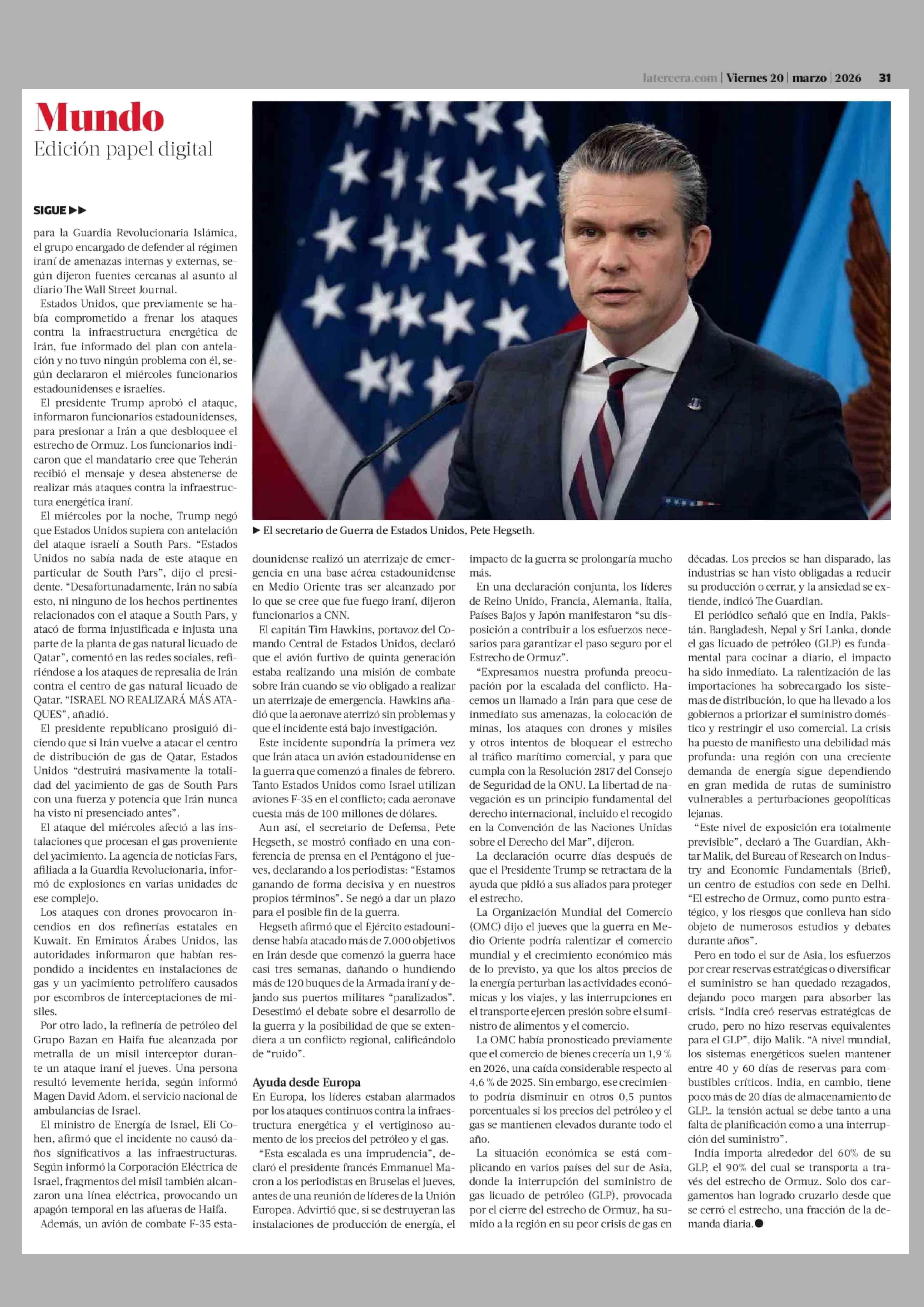 | Título: | Conflicto en Medio Oriente escala con ataques a campos gasíferos mientras el Pentágono pide US$ 200 mil millones adicionales |