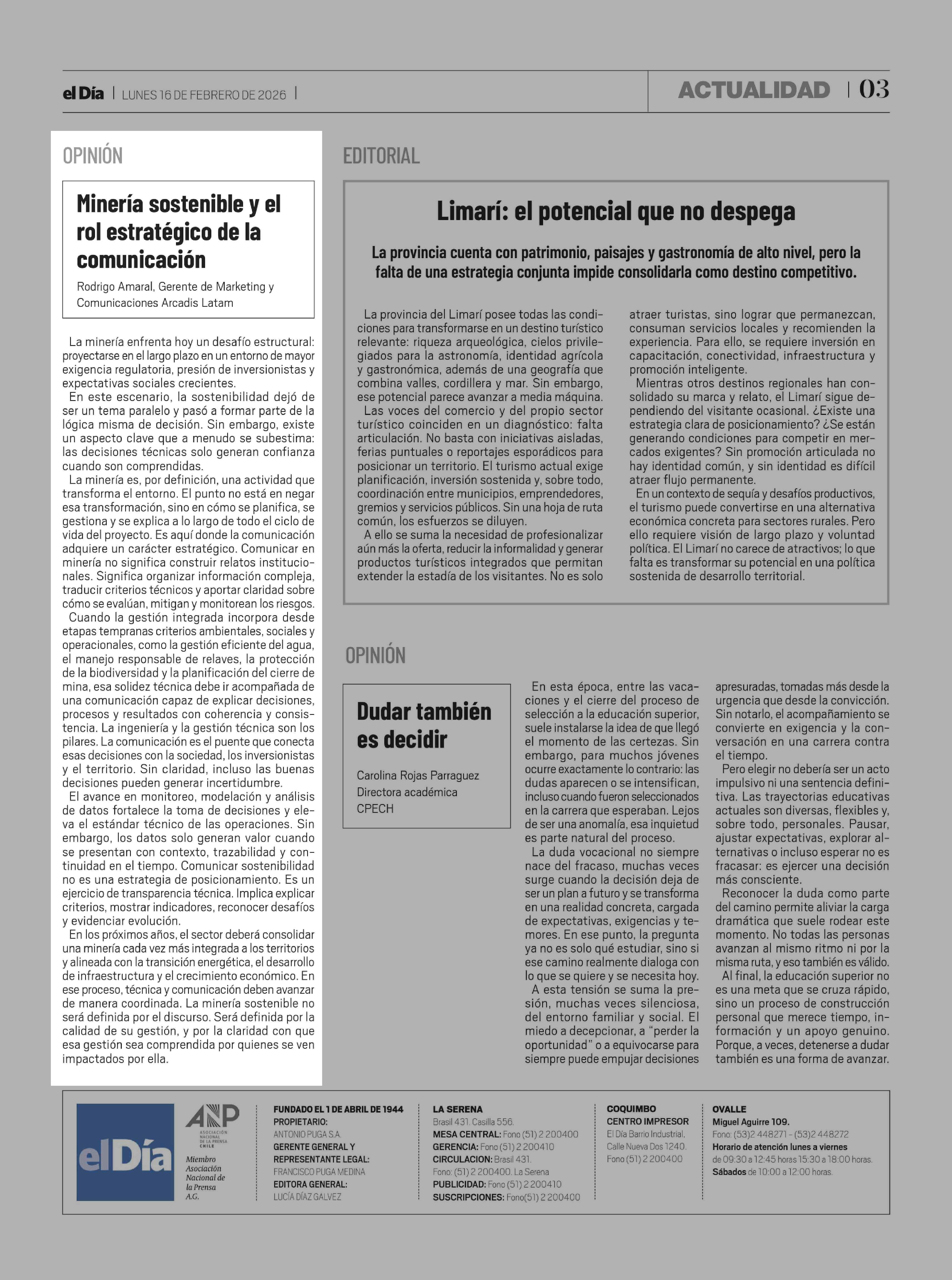 Fecha: 16-02-2026 Sector: Columnas de Opinión Región: Región de Coquimbo
