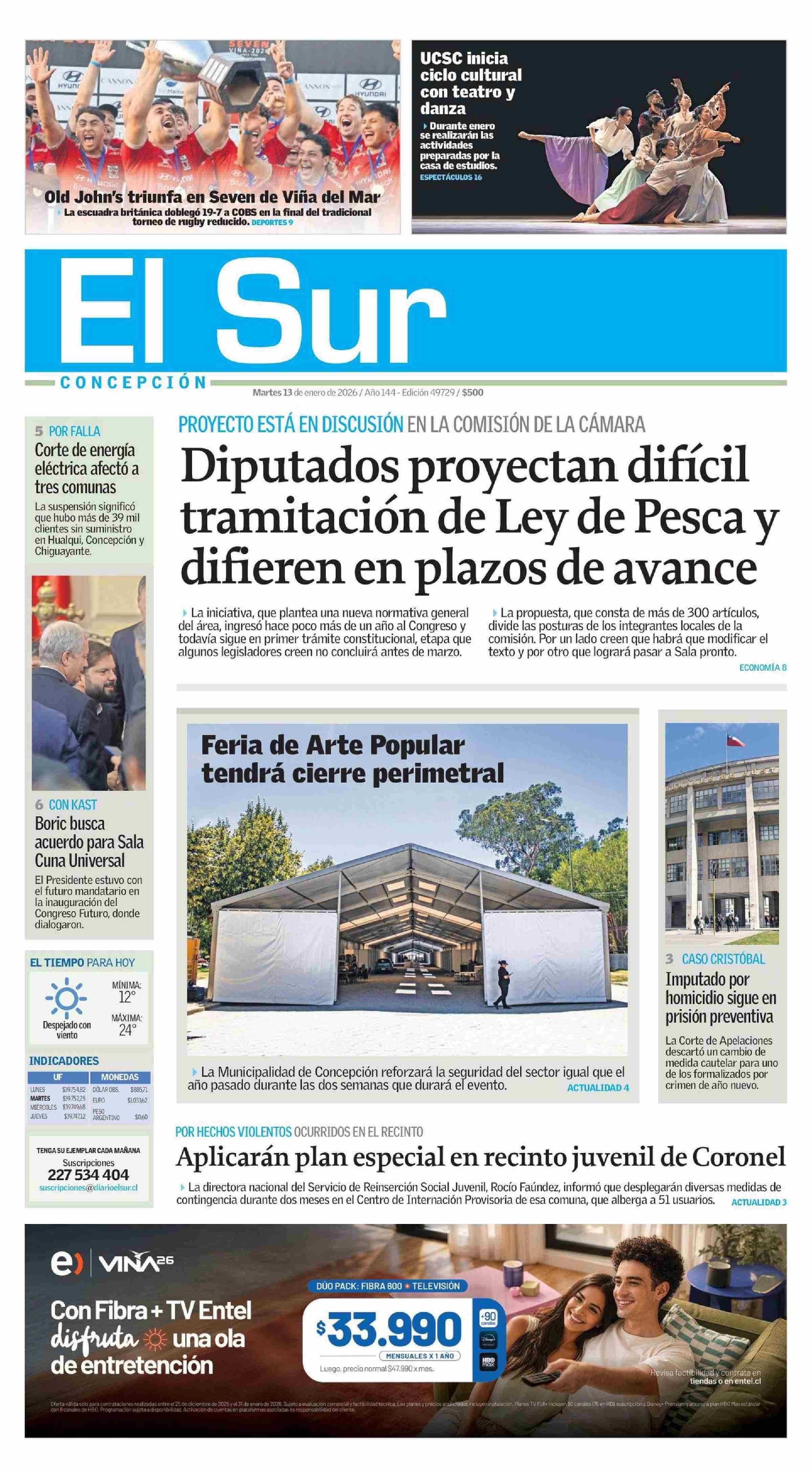 PORTADA EL SUR CHILE 13-01-2026 El Sur |