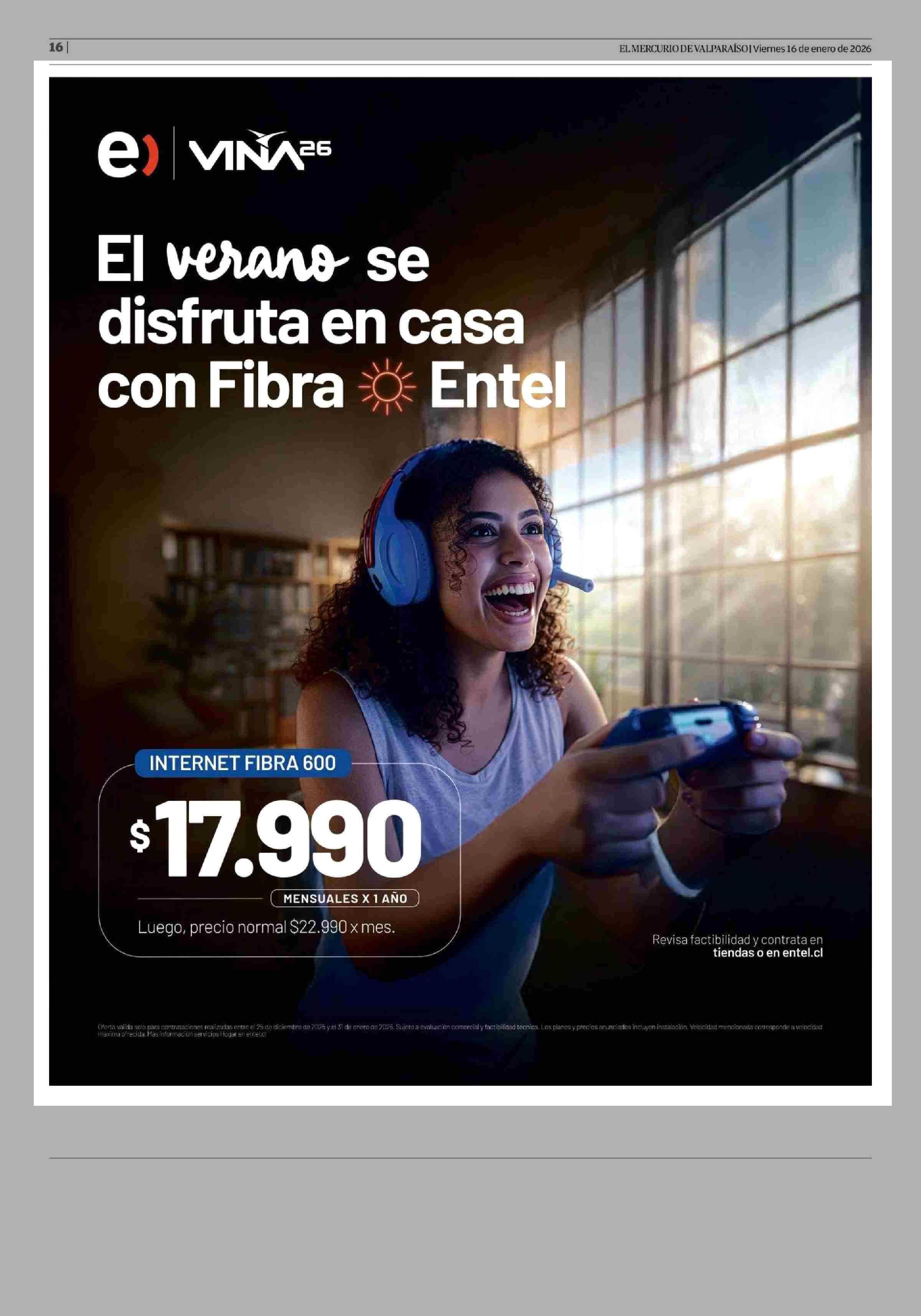 Aviso Telecomunicaciones: ENTEL 16-01-2026 El Mercurio de Valparaíso |