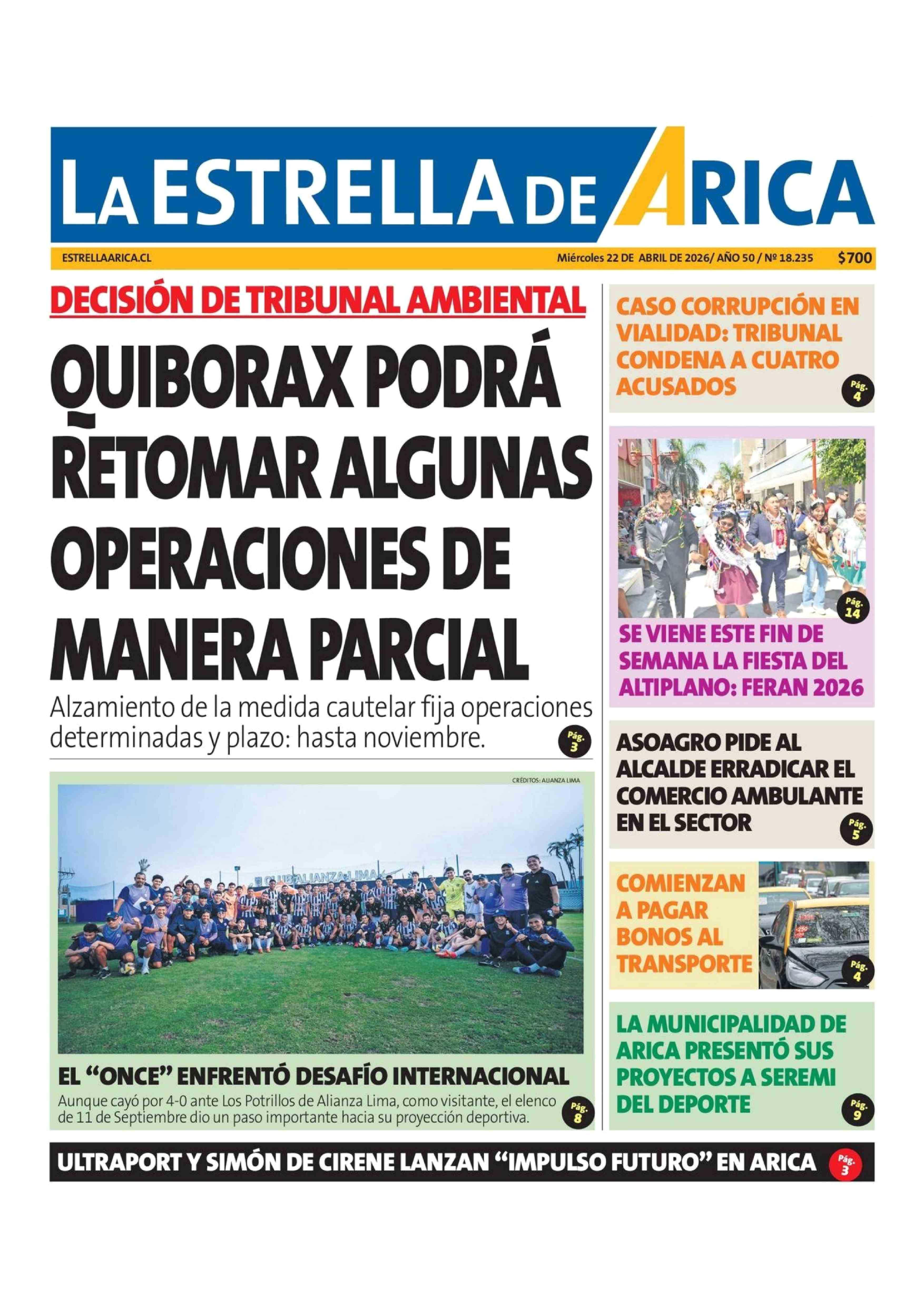 | Fecha: | 22-04-2026 | Sector: | Portada | Región: | Región de Arica y Parinacota |
