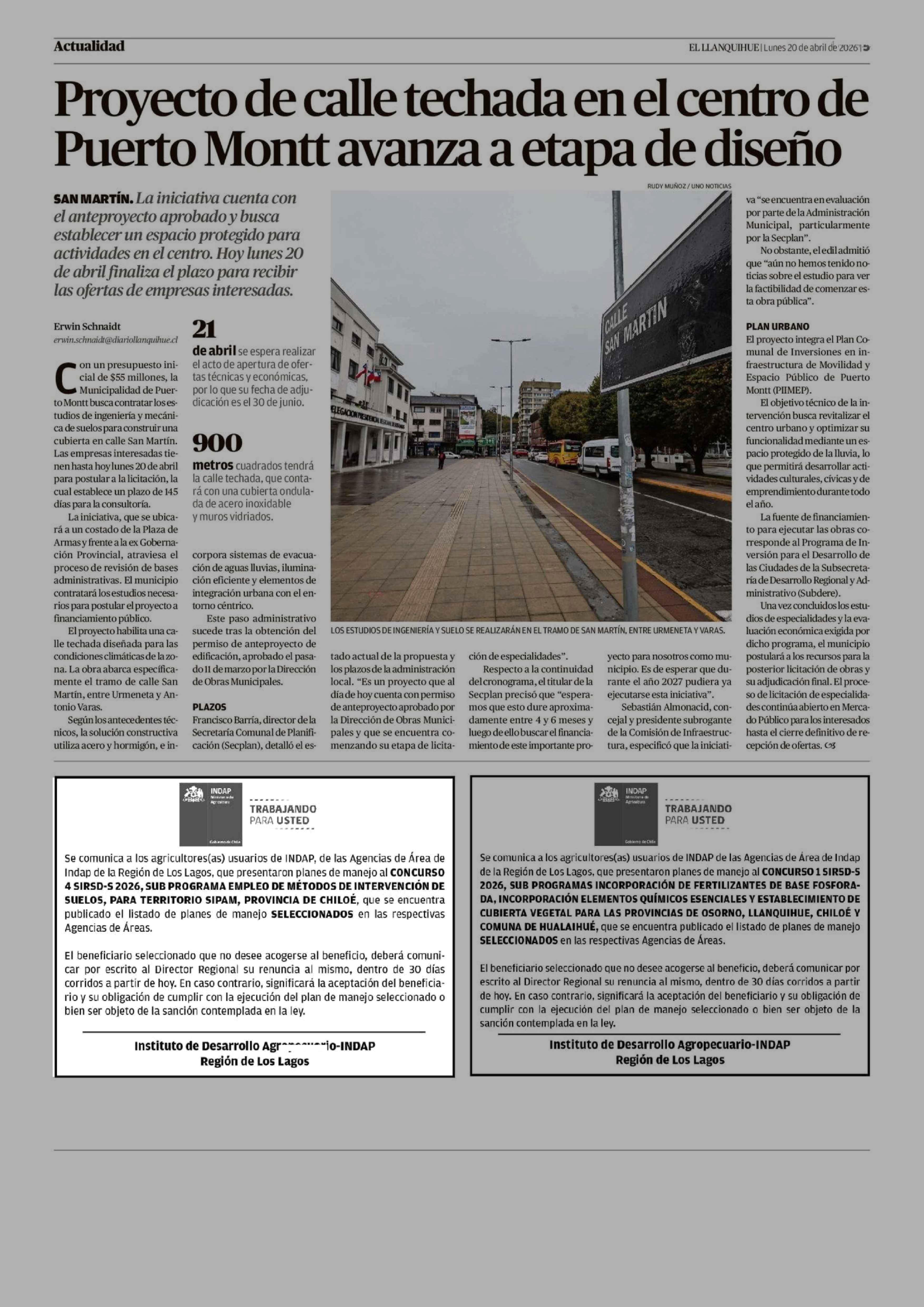 Extractos: INDAP 20-04-2026 El Llanquihue |