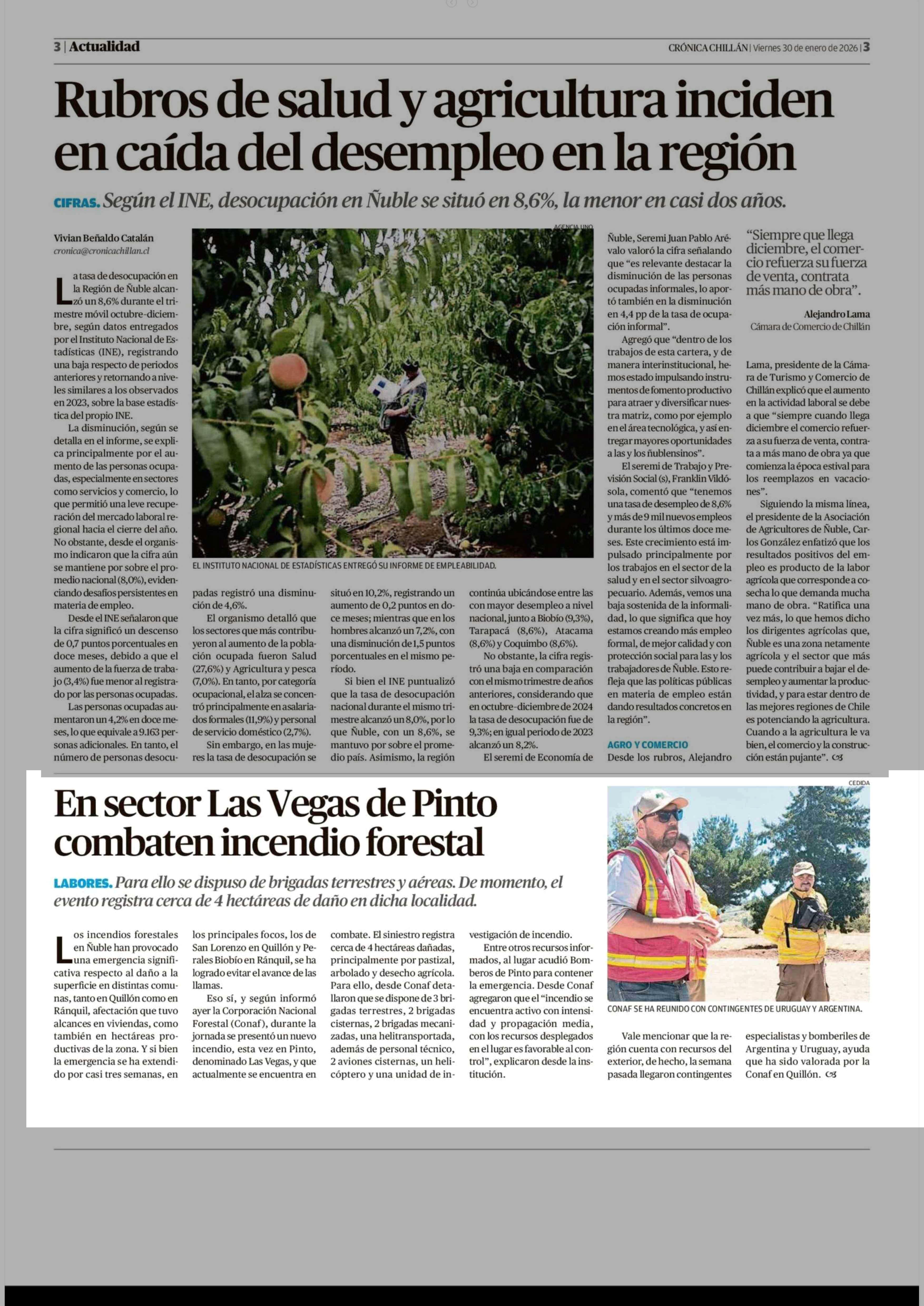 | Fecha: | 30-01-2026 | Sector: | Noticia general | Región: | Región del Ñuble |