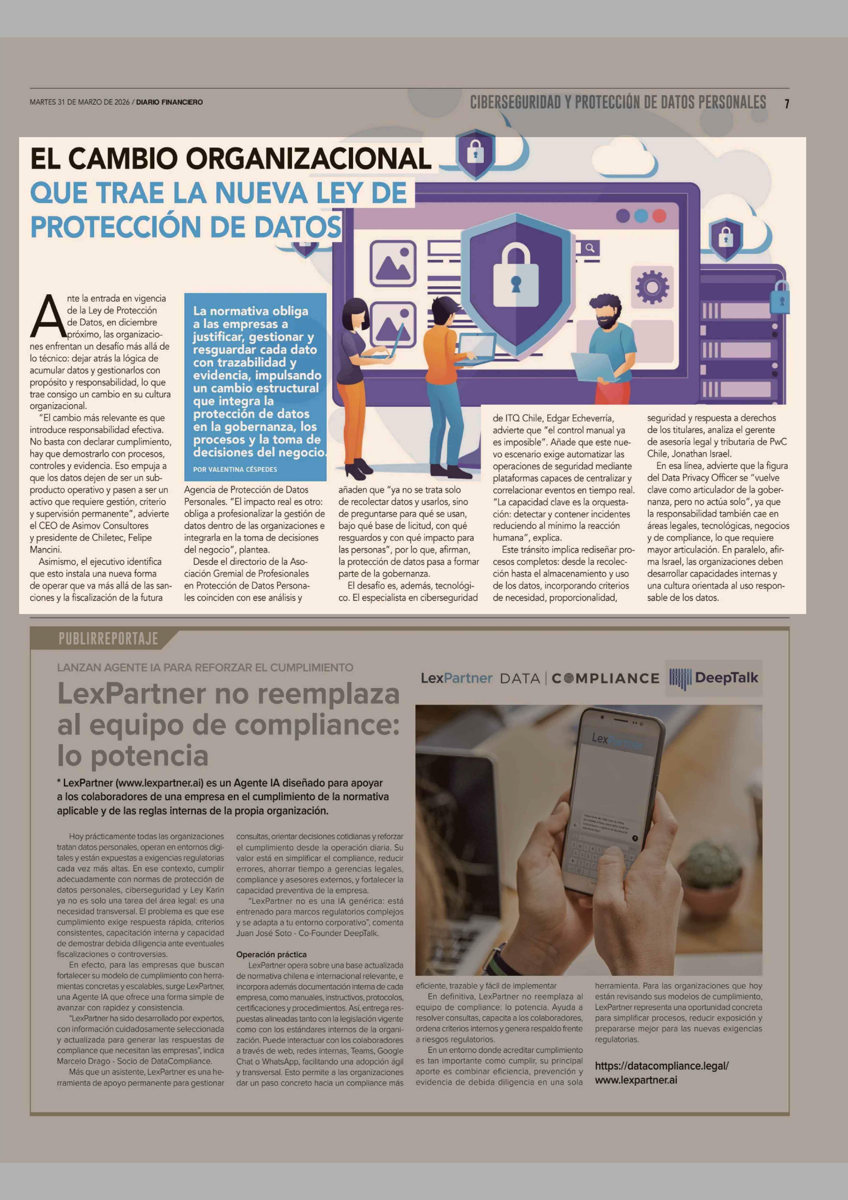 EL CAMBIO ORGANIZACIONAL QUE TRAE LA NUEVA LEY DE PROTECCIÓN DE DATOS 31-03-2026 Diario Financiero |