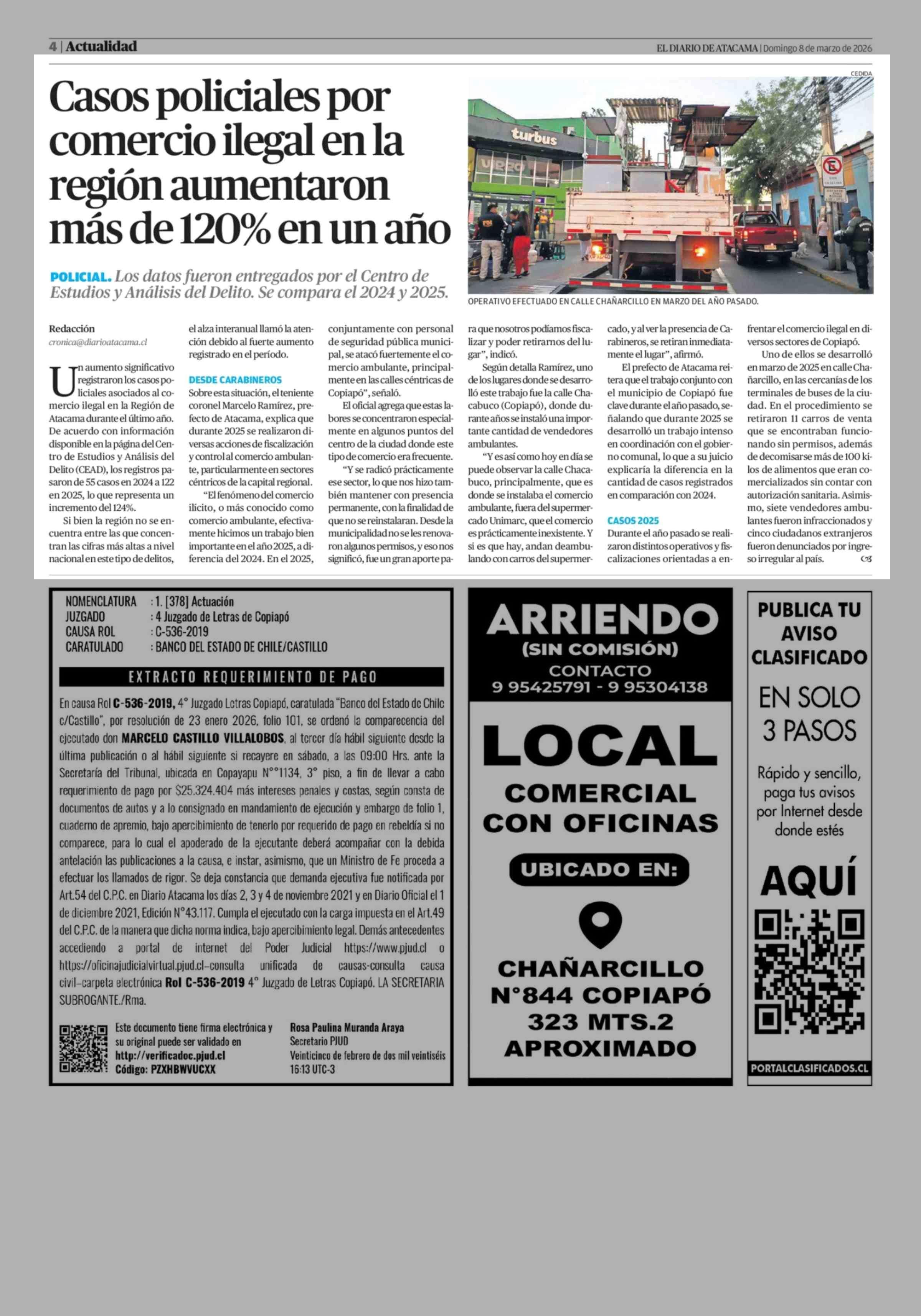 Casos policiales por comercio ilegal en la región aumentaron más de 120% en un año 08-03-2026 El Diario de Atacama |