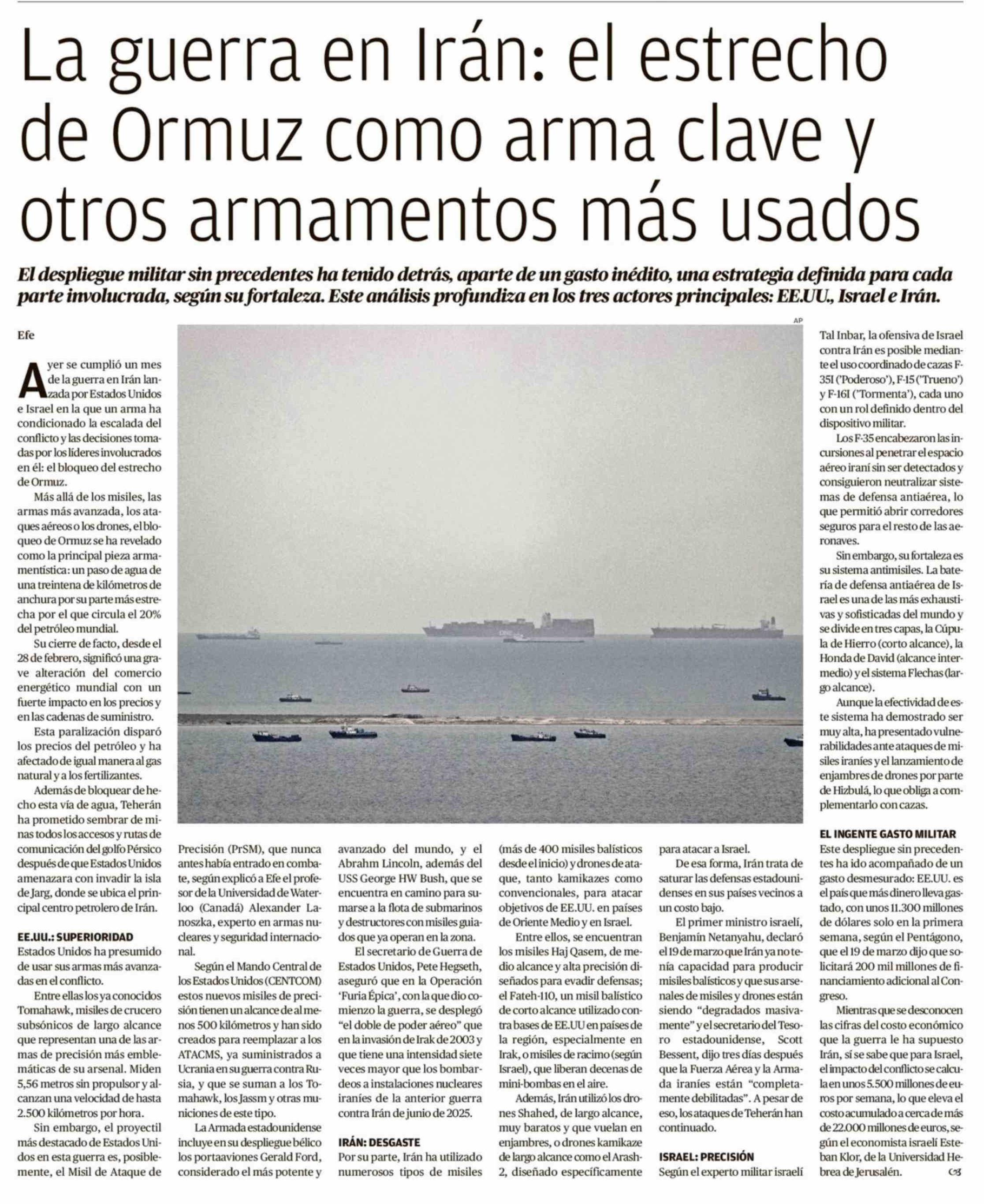 | Título: | La guerra en Irán: el estrecho de Ormuz como arma clave y otros armamentos más usados |