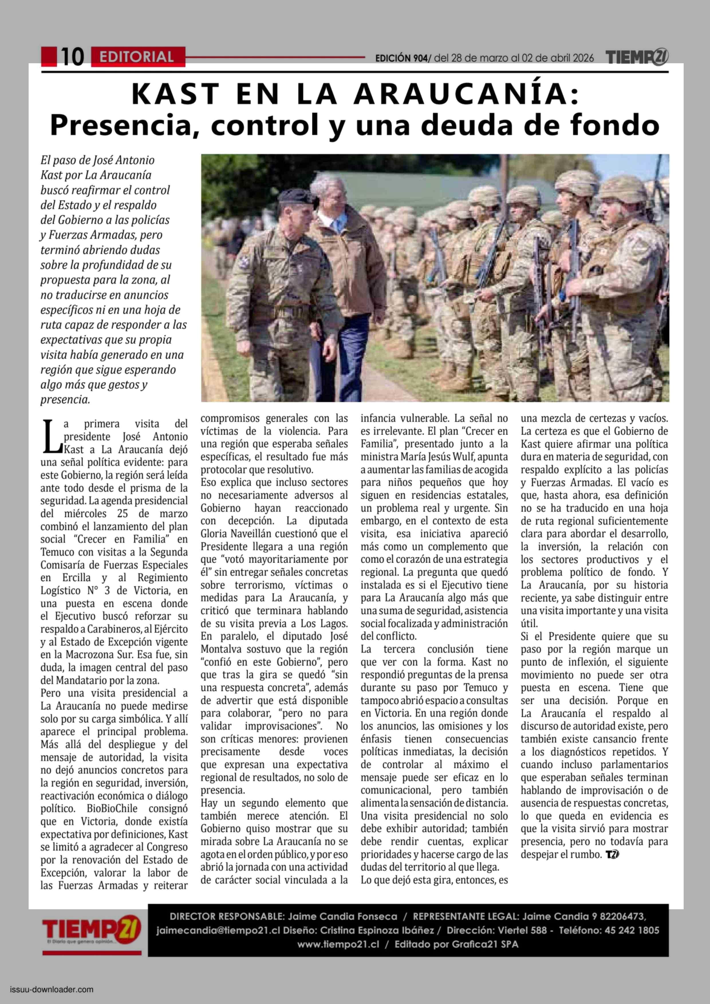 KAST EN LA ARAUCANÍA: Presencia, control y una deuda de fondo