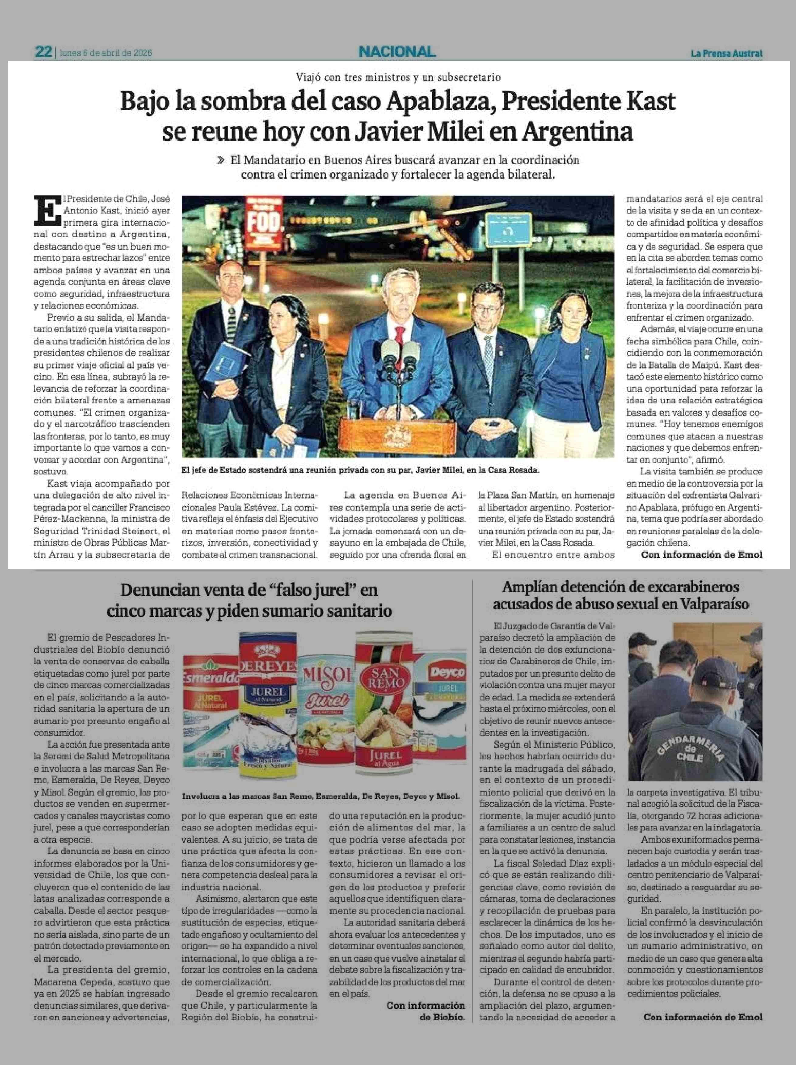 Fuente: La Prensa Austral (La Prensa Austral) Página(s): 22